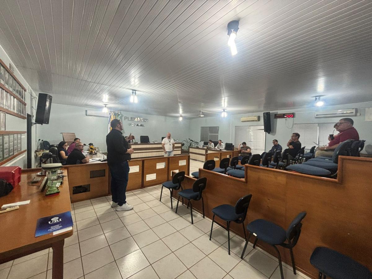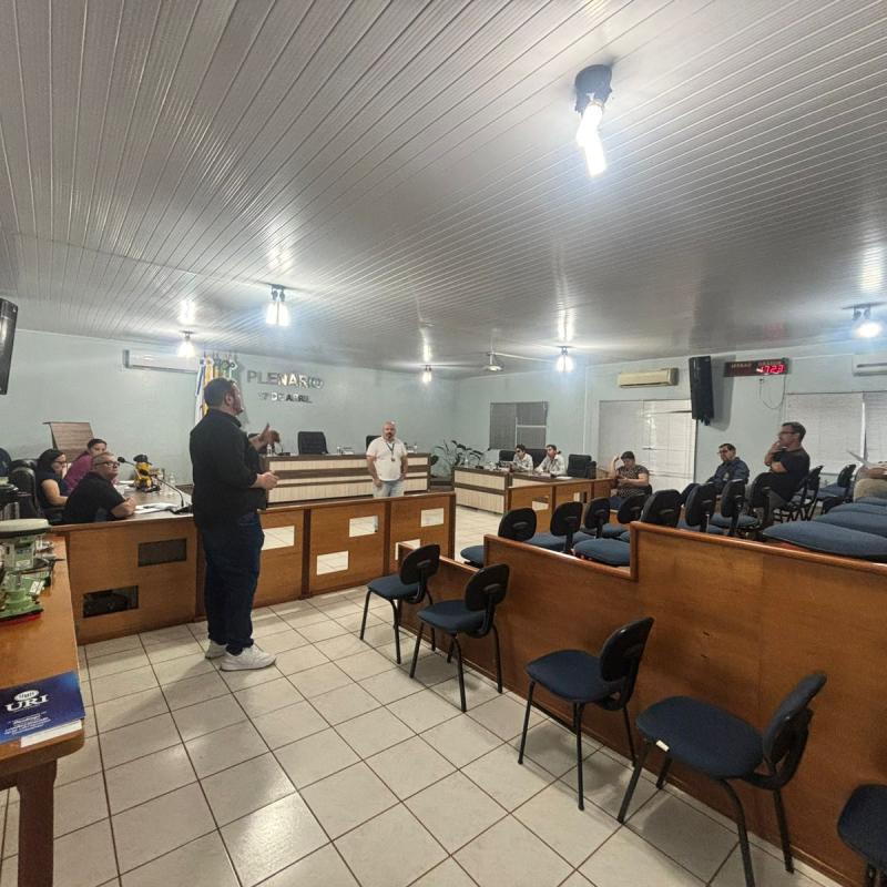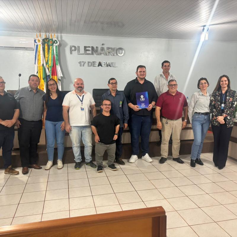 A reunião, que ocorreu às 17h na Câmara Municipal, contou com a presença do Professor Higor Machado, gestor do Polo de Modernização Tecnológica do Vale do Jaguari (PMTVJ), e do Professor Rodrigo B. Pinto, coordenador do Curso de Arquitetura e Urbanismo da URI Santiago. A analista de gabinete da Universidade, Andressa Ciscato, também esteve presente na ocasião, prestando apoio institucional.