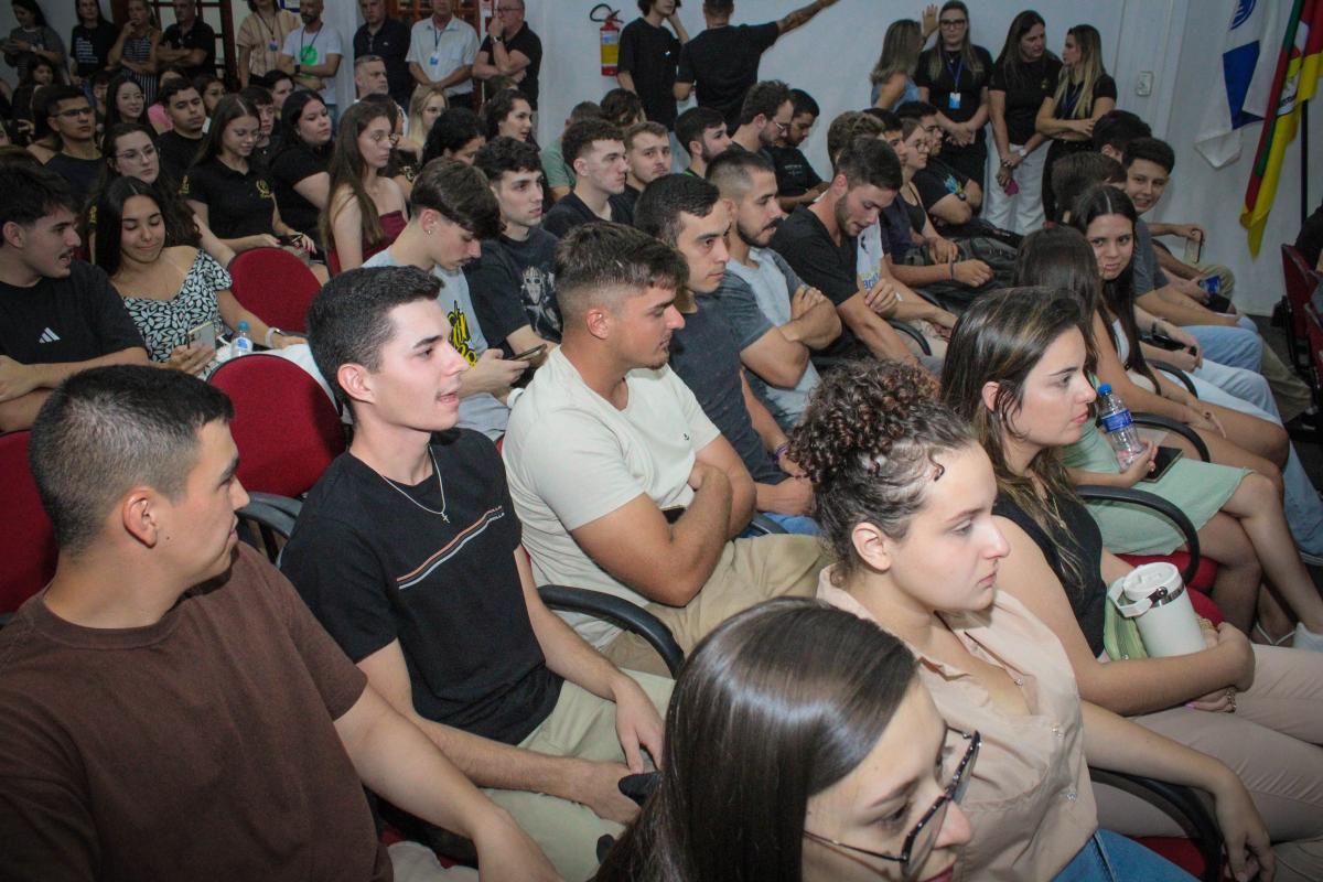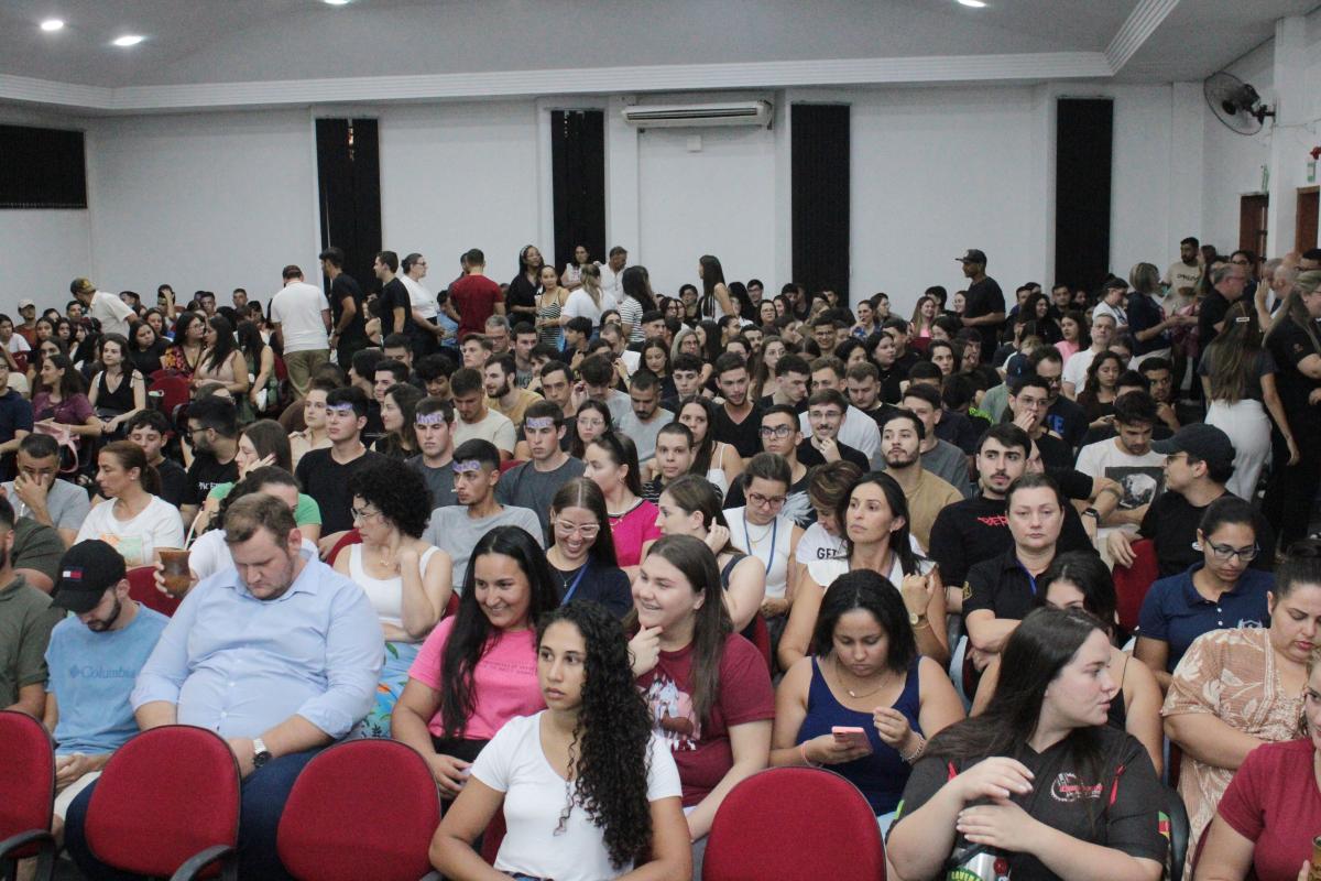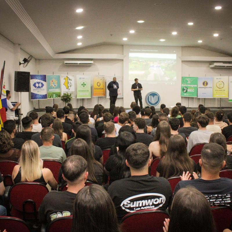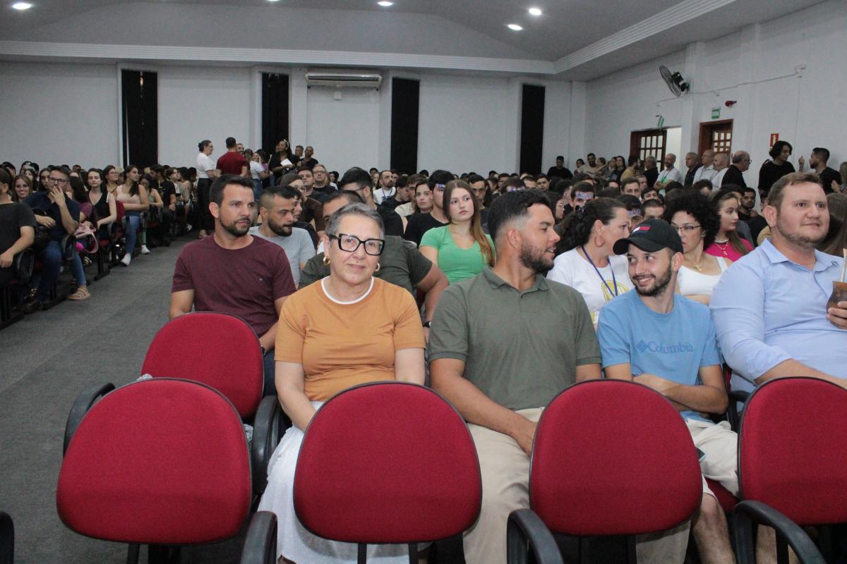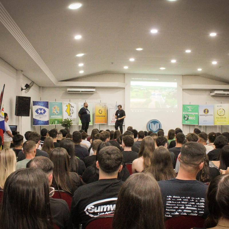 A segunda-feira (24), foi marcada por um momento de acolhimento e integração na Universidade Regional Integrada do Alto Uruguai e das Missões (URI) Câmpus de Santiago, com uma recepção aos estudantes, em especial os calouros, que iniciam sua jornada acadêmica no 1º semestre de 2025. O evento, realizado no Salão de Atos da Instituição, contou com a presença de mais de 300 pessoas entre acadêmicos, professores e colaboradores.