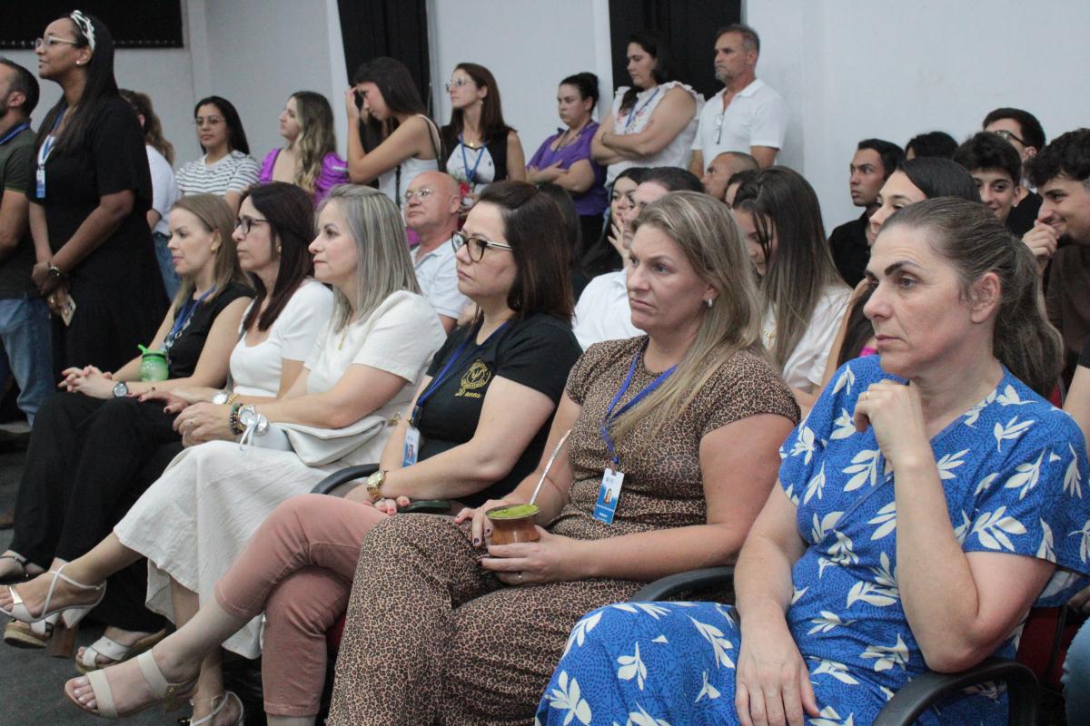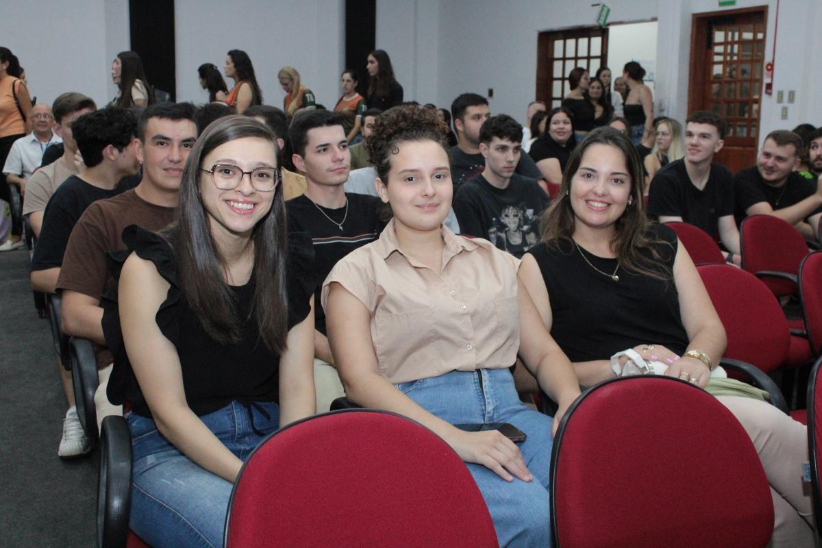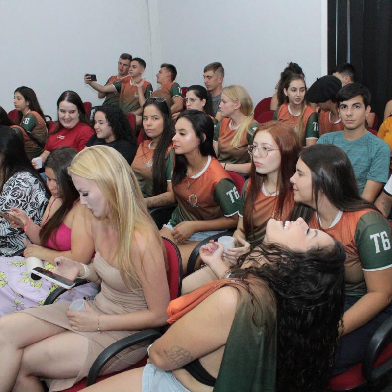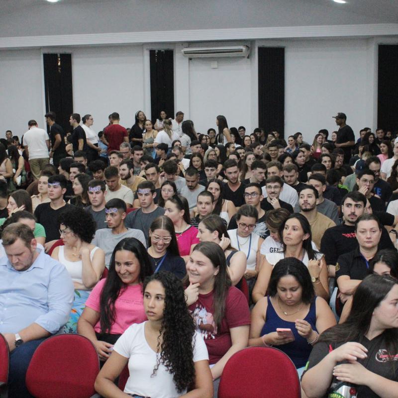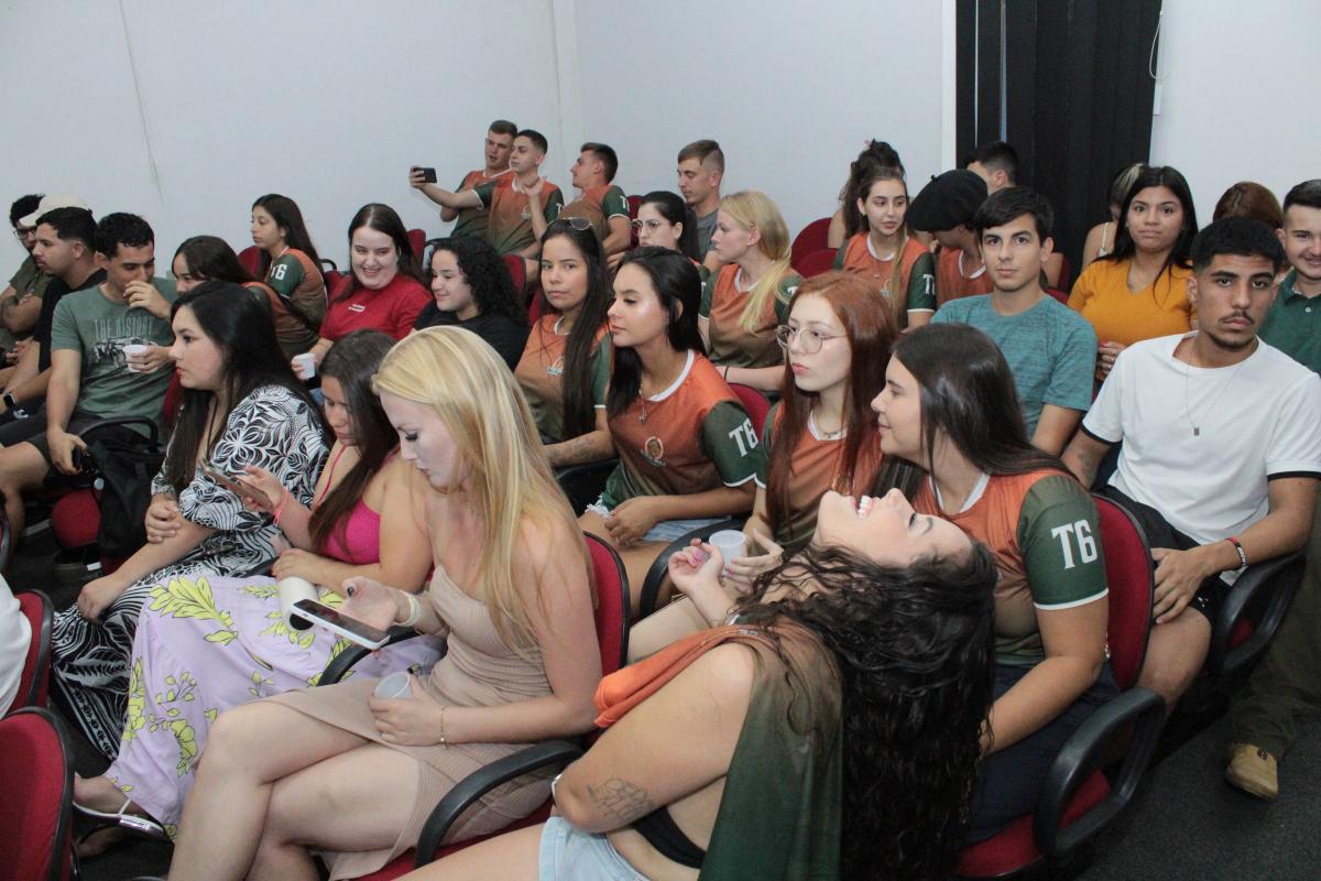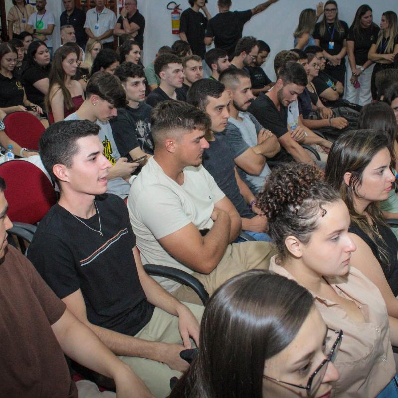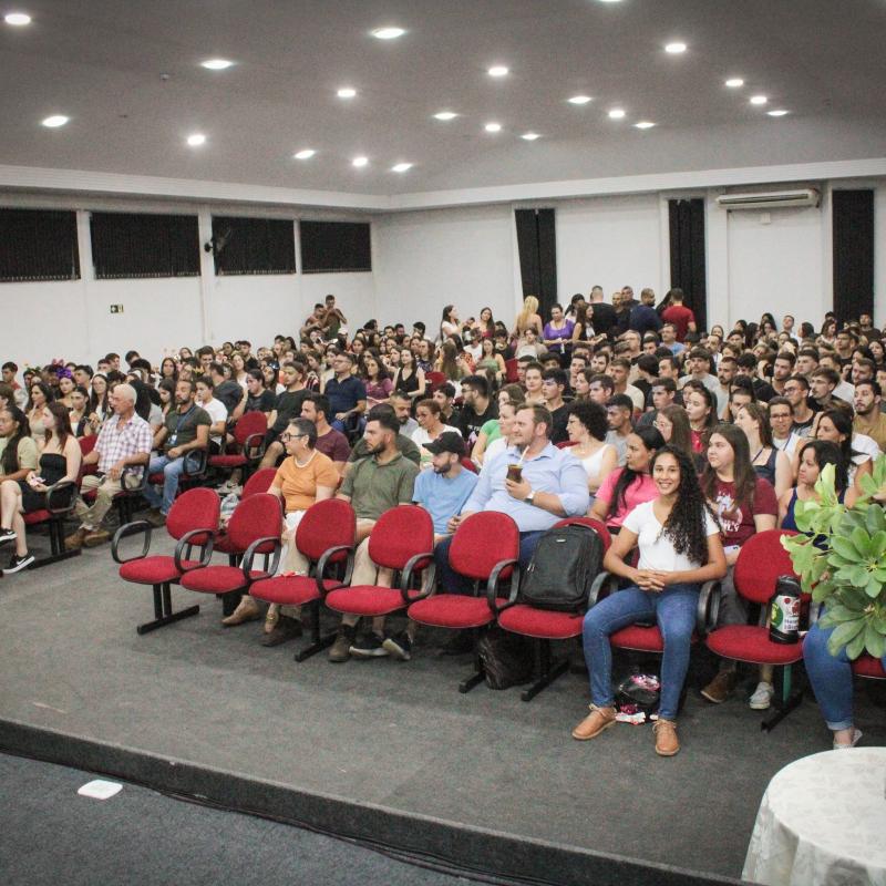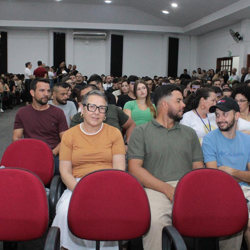 A noite seguiu com a exibição do vídeo institucional da universidade, que reforçou os valores e o compromisso da URI Santiago com o desenvolvimento integral dos alunos, proporcionando uma experiência acadêmica rica e transformadora. O vídeo foi uma maneira eficaz de conectar os novos alunos com a história e a missão da universidade, além de destacar a excelência dos cursos e das oportunidades que a instituição oferece.