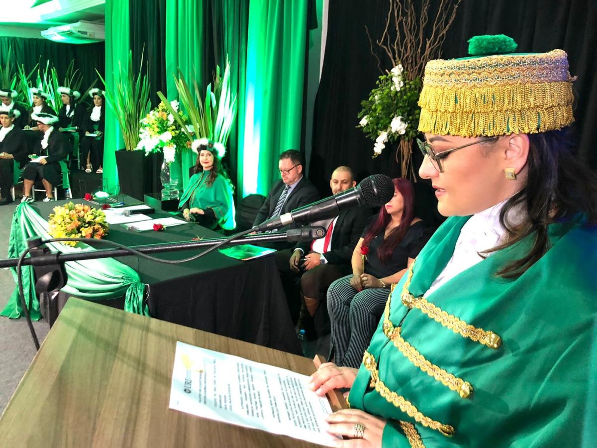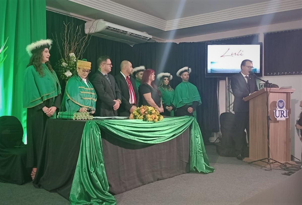 Sábado (11), o Salão de Atos da Universidade Regional Integrada do Alto Uruguai e das Missões- URI Santiago foi palco da formatura da primeira turma do curso de Educação Física Bacharelado, em cerimônia presidida pela Diretora Acadêmica, professora Claudete Moreschi. Na mesa de honra, além de autoridades acadêmicas, autoridades civis prestigiaram o ato solene.