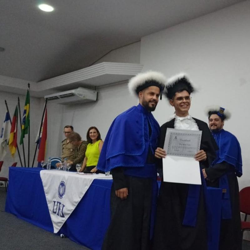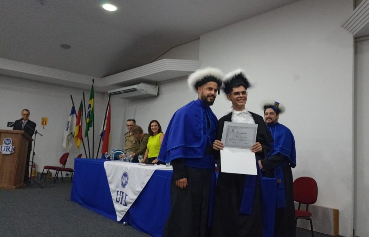 Como forma de incentivo e reconhecimento ao esforço pessoal que os acadêmicos empreendem em sua trajetória, a URI Câmpus de Santiago instituiu, através de portaria normativa, o certificado de mérito acadêmico para aqueles que alcançaram melhores desempenhos. O coordenador do curso, professor Anderson de Paula Fortes, fez a entrega deste certificado ao acadêmico Bruno Oliveira Cavalheiro.