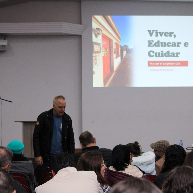 Na noite de terça-feira, 2 de junho, a Universidade Regional Integrada do Alto Uruguai e das Missões (URI) Câmpus de Santiago deu início à sua formação continuada em Educação Empreendedora com a palestra “Viver, educar e cuidar: inovar e empreender com propósito”.