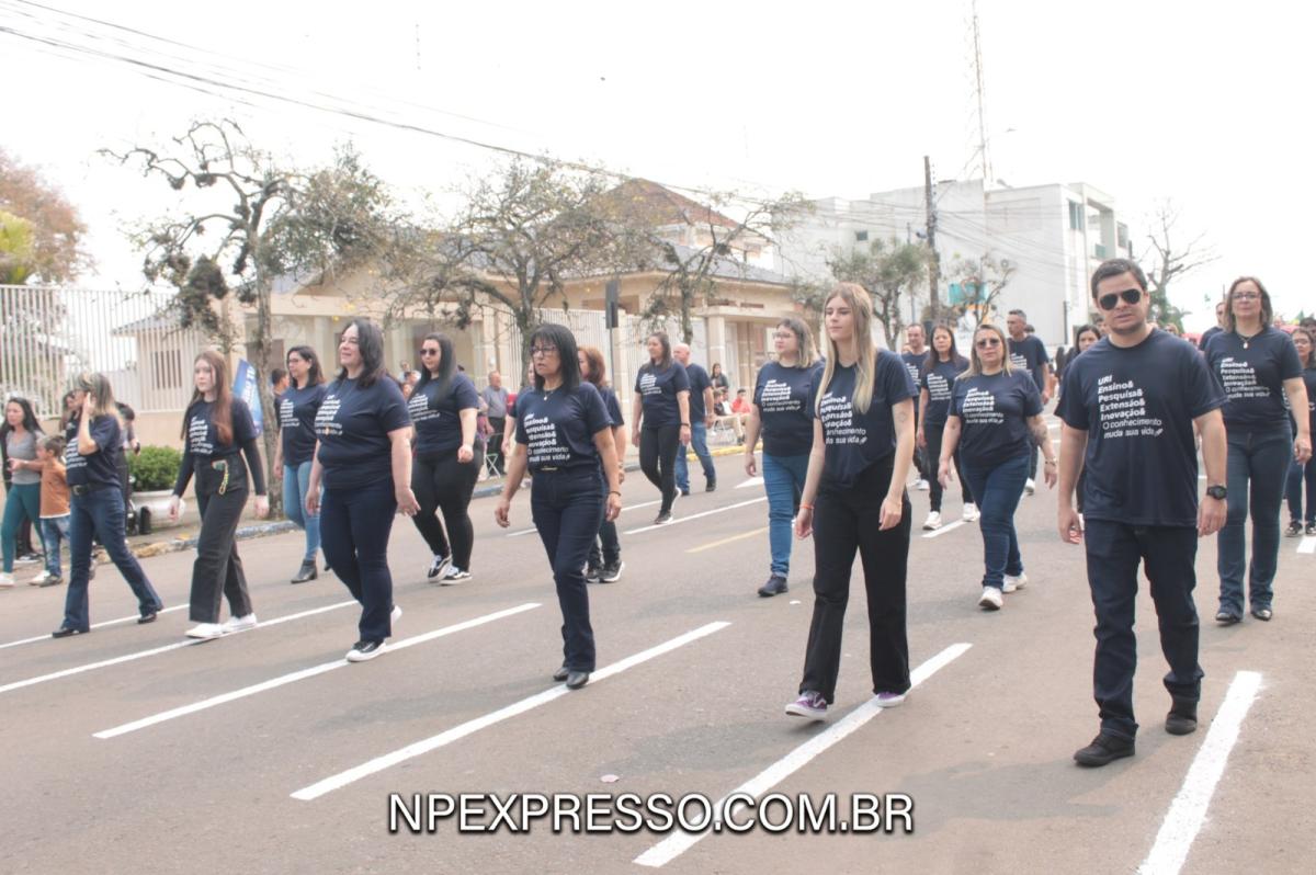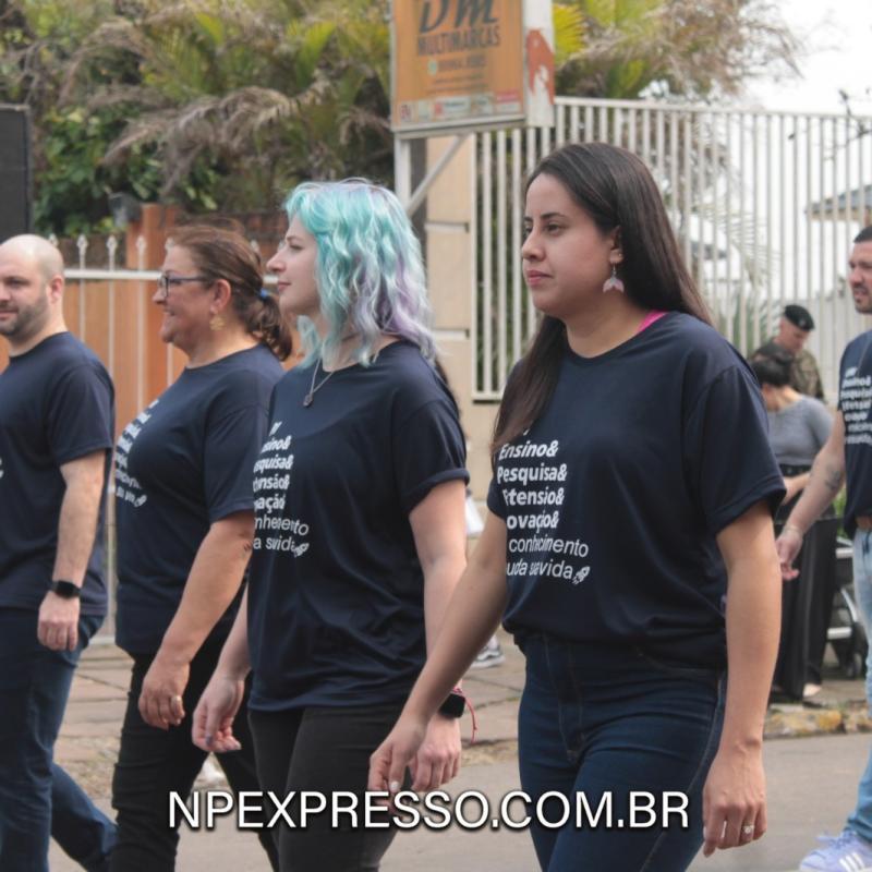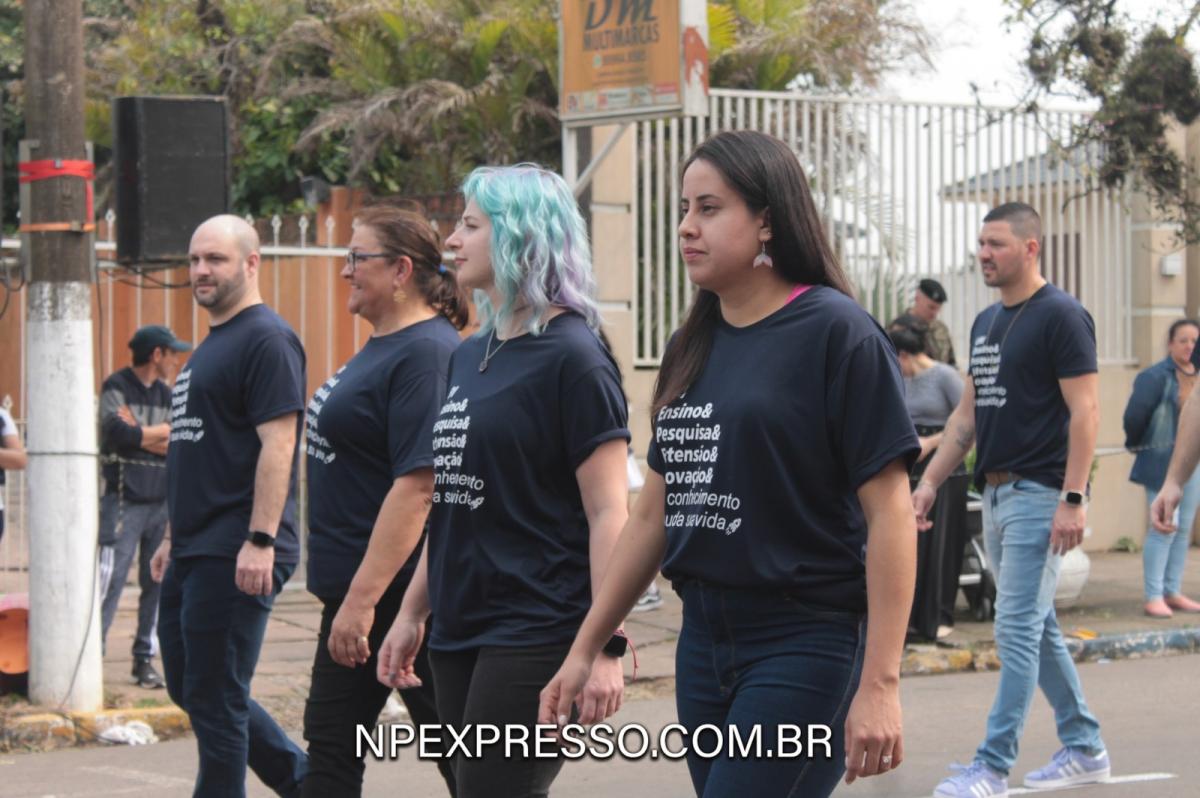 Para encerrar a participação da URI Santiago no desfile cívico, a Instituição foi representada pelos técnicos administrativos e de apoio, que trabalham nas unidades administrativas da Escola e do Câmpus, atendendo estudantes e professores e tornando a experiência de todos ainda mais incrível.