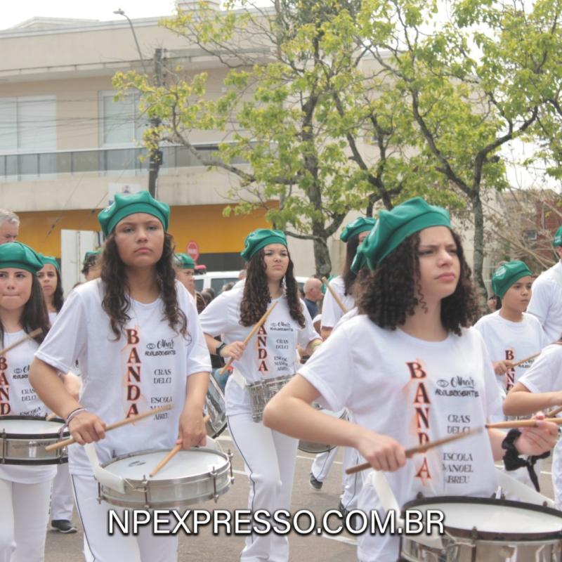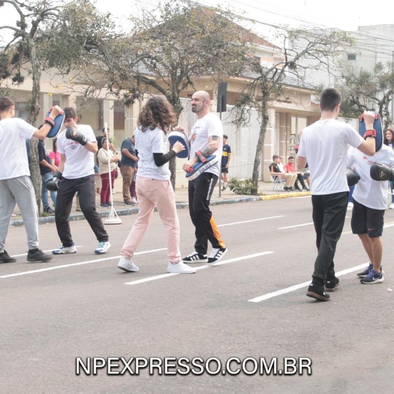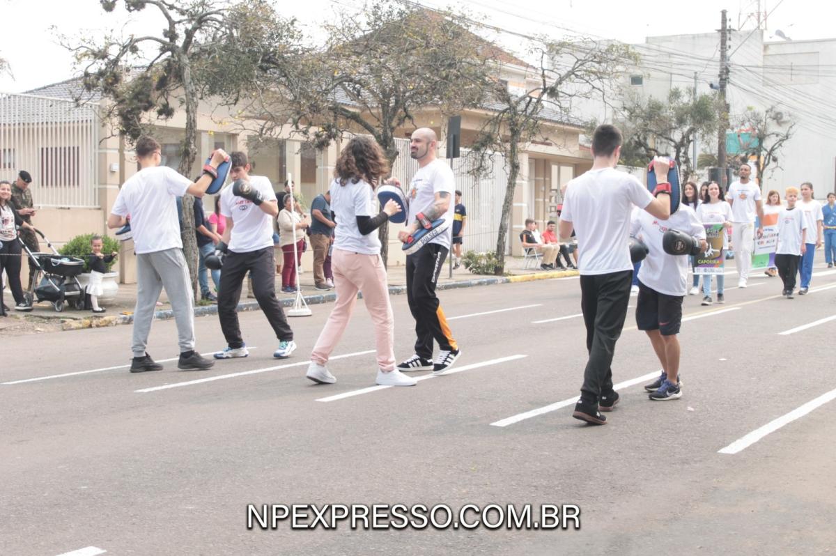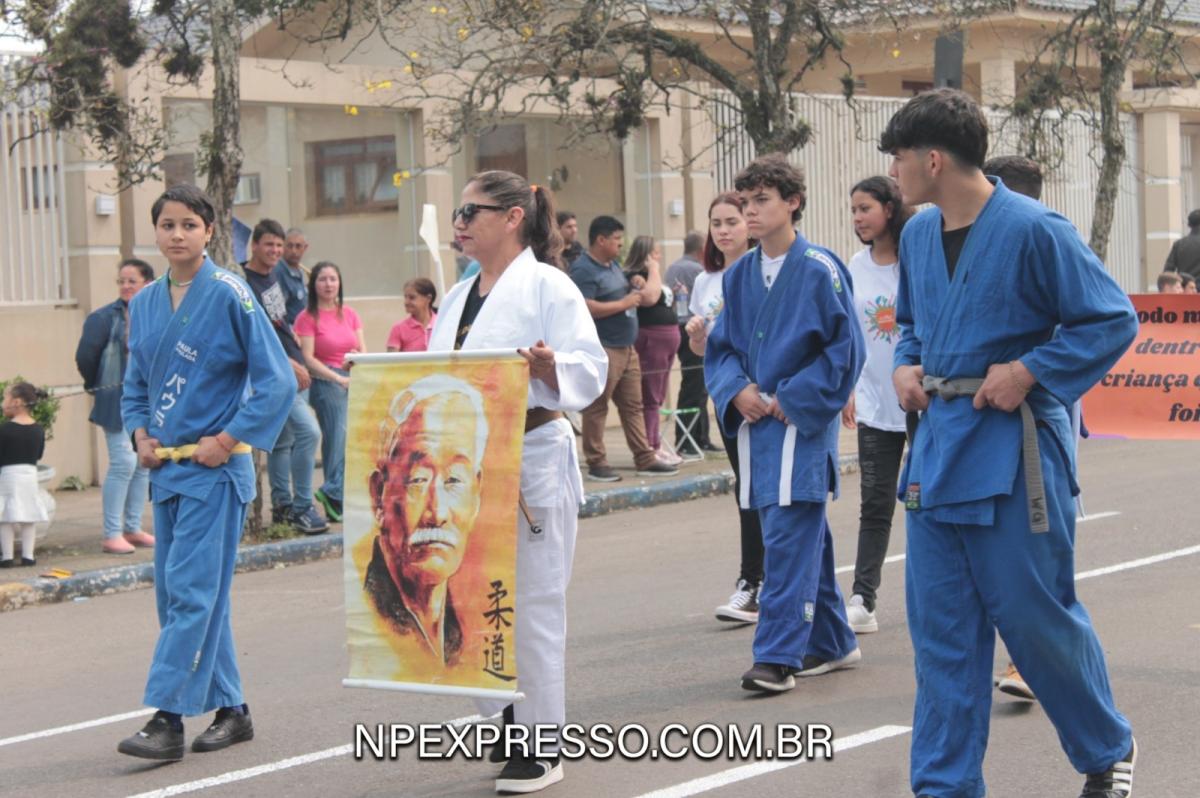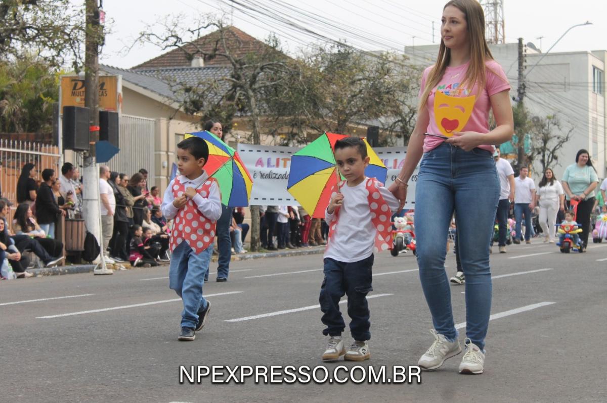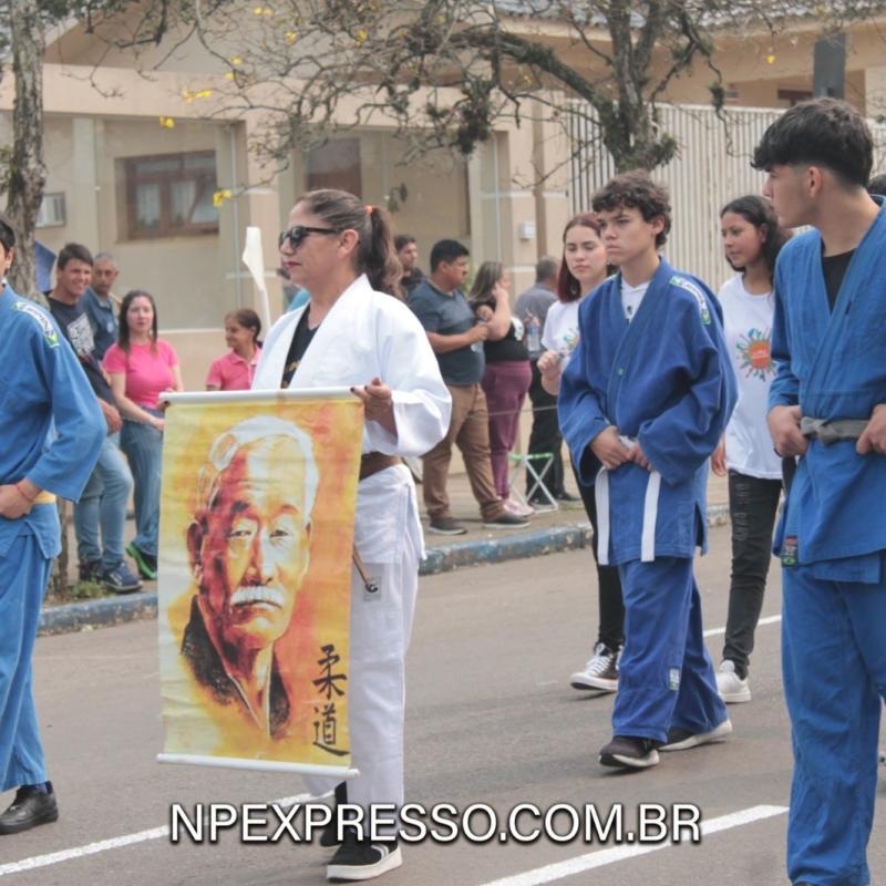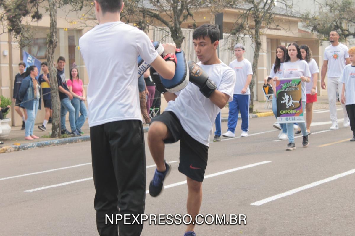 Na sequência, retratando a cultura e a literatura, os alunos da Escola de Educação Básica da URI, fantasiados de personagens, encantaram a todos com uma apresentação. Ainda enfatizando a temática, foi apresentado um pelotão de estudantes dos anos iniciais e do ensino fundamental, acompanhados de seus pais e familiares.