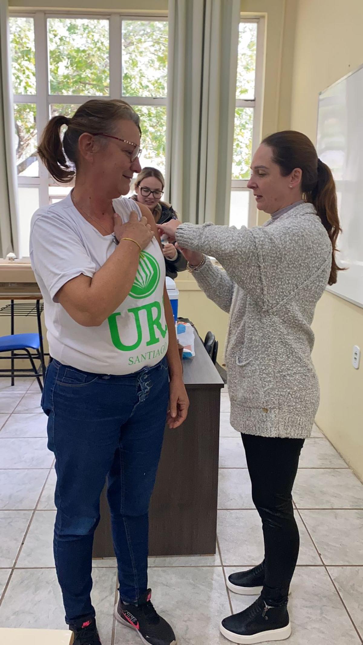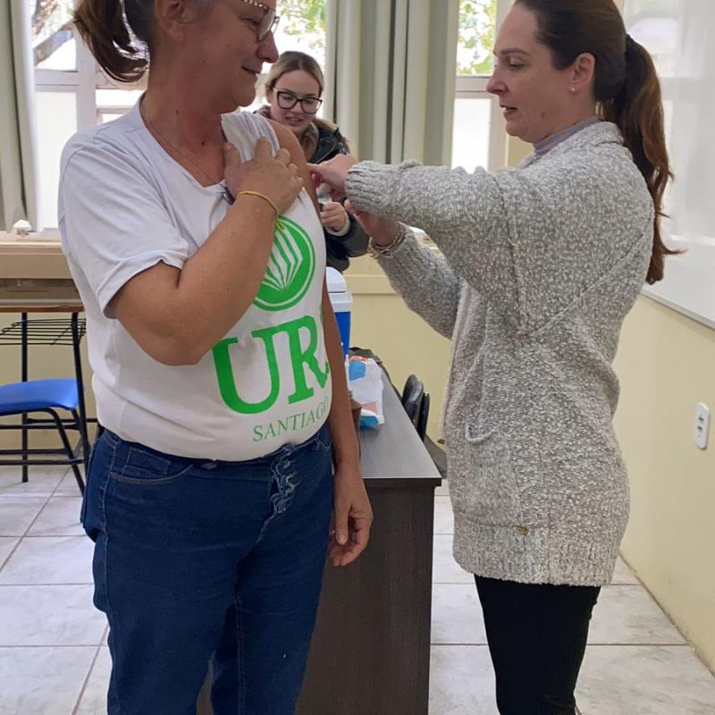 Com o objetivo de reforçar a saúde e o bem-estar de seus colaboradores, a Universidade Regional Integrada do Alto Uruguai e das Missões (URI) Câmpus de Santiago iniciou uma campanha de vacinação contra a gripe. A ação realizada na tarde desta quarta-feira (15), contou com o apoio da Comissão Interna de Prevenção de Acidentes e Assédio (CIPA) da URI Santiago e da Secretaria de Saúde do Município, disponibilizando o imunizante.
