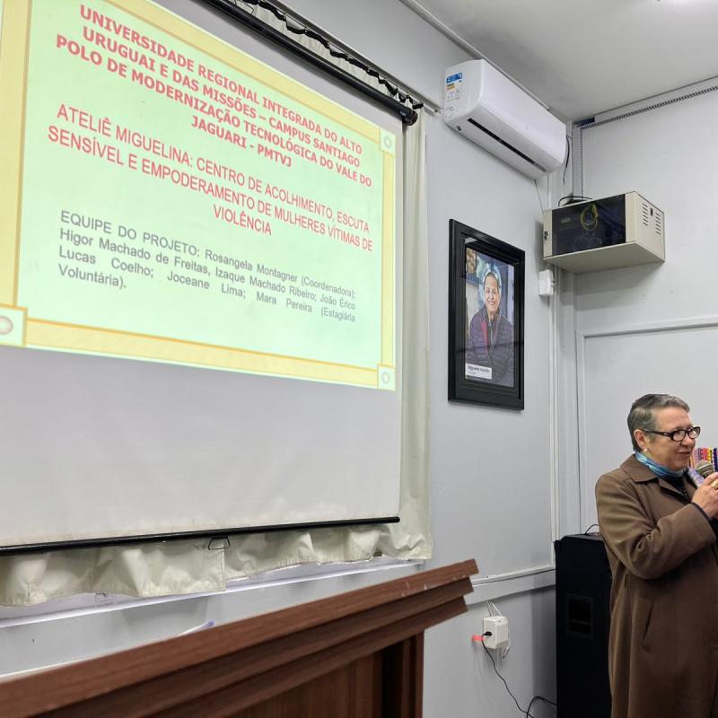 Projeto “Ateliê Miguelina: Centro de Acolhimento, Escuta Sensível e Empoderamento de Mulheres Idosas Vítimas de Violência”, coordenado pela Professora Rosangela Montagner, que promoveu acolhimento, convivência e protagonismo social, cultural e econômico para mulheres idosas em situação de violência, tendo como uma de suas estratégias a produção de artesanato.