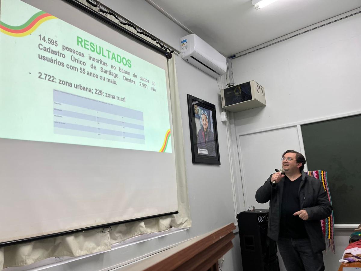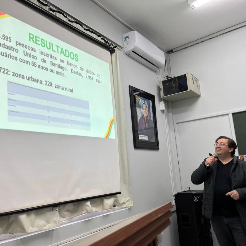 Projeto “O Perfil da Pessoa Idosa no Cadastro Único de Santiago, Rio Grande do Sul: Análise das Vulnerabilidades e Potencialidades”, coordenado pelo Diretor Acadêmico da URI Santiago, Professor Izaque Ribeiro, que realizou um levantamento científico para subsidiar políticas públicas de assistência social voltadas à população idosa cadastrada no CadÚnico.