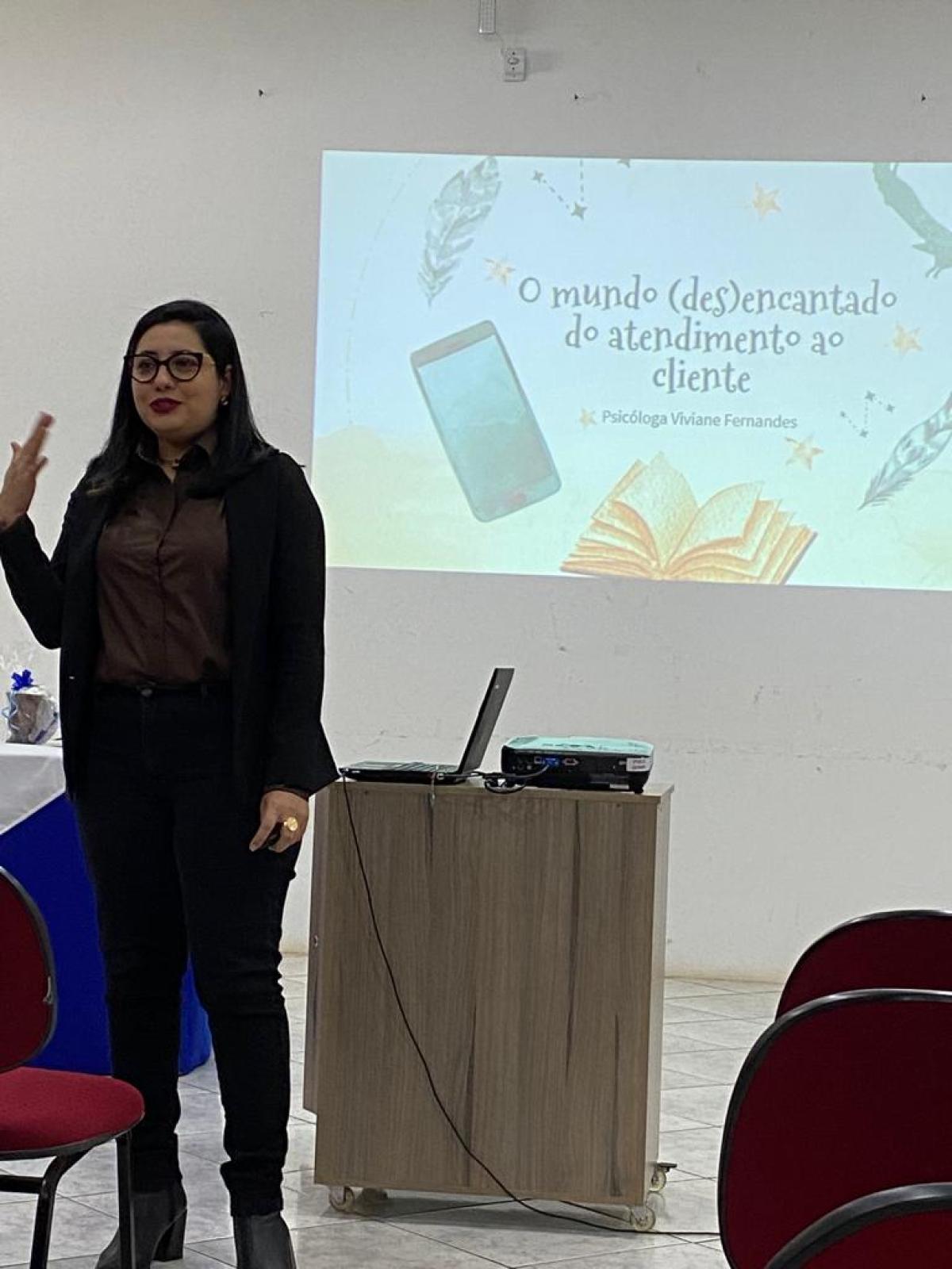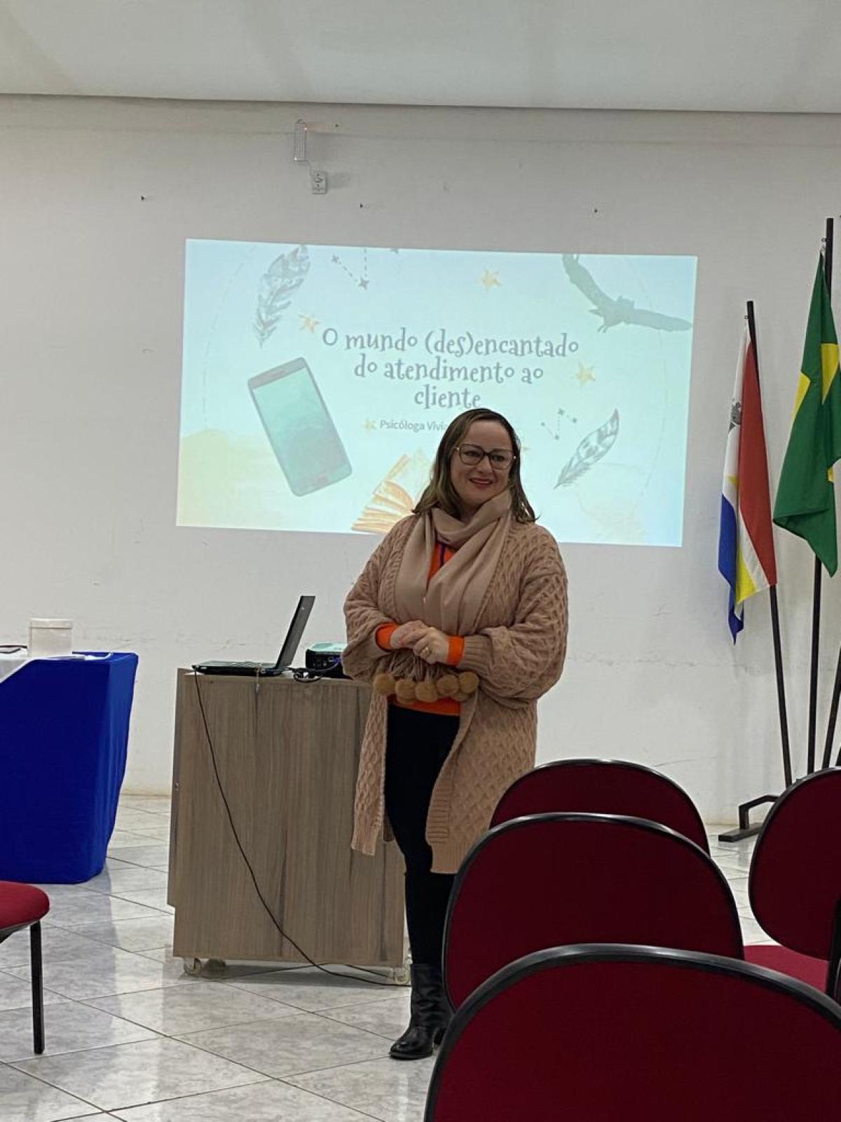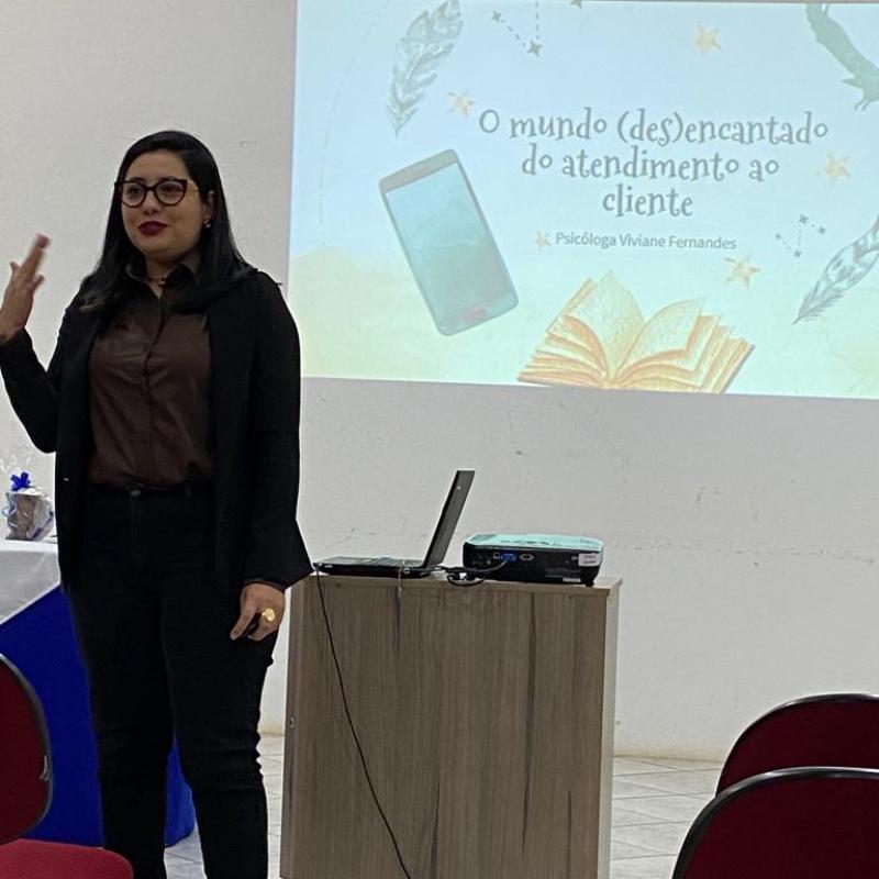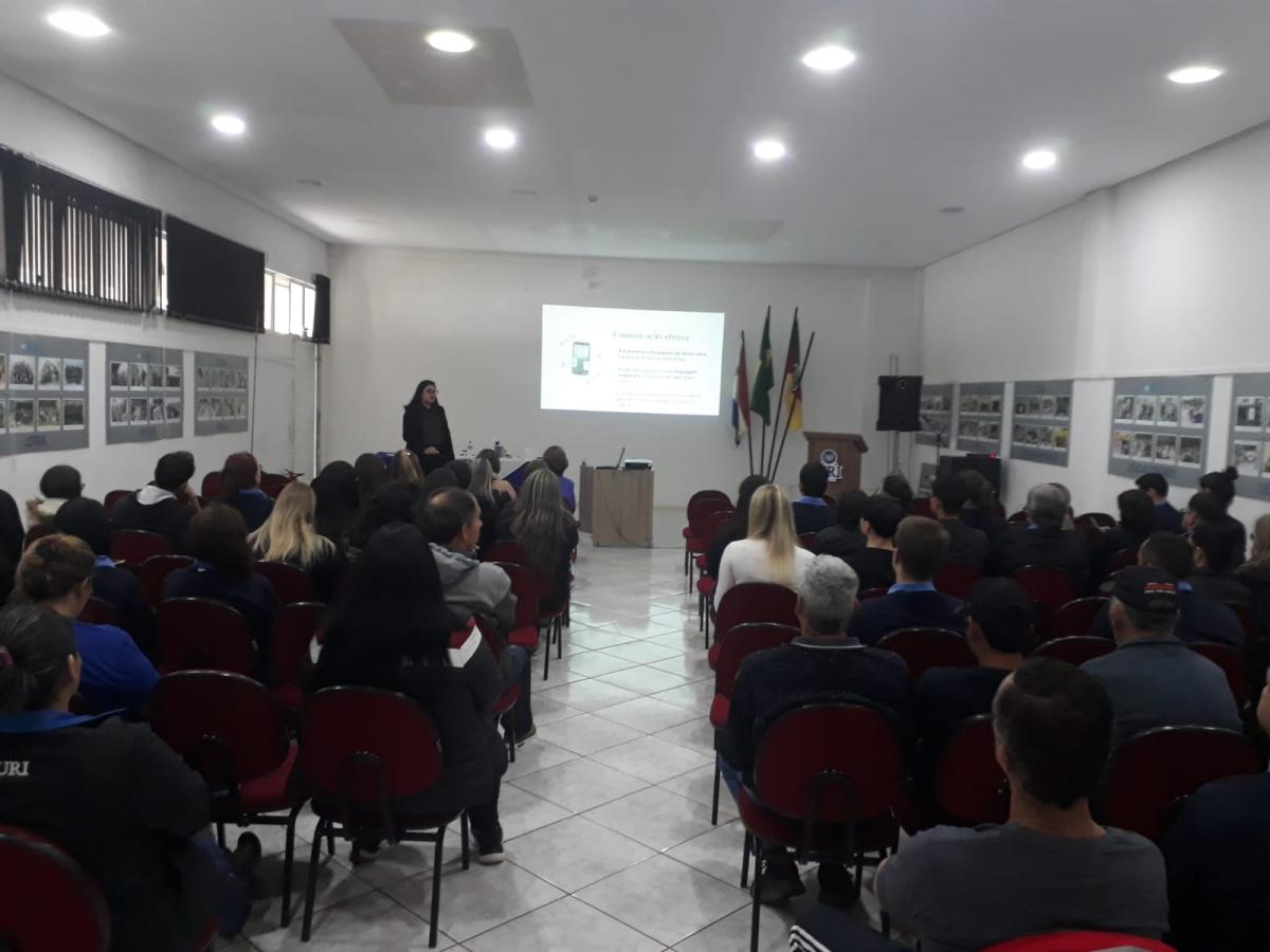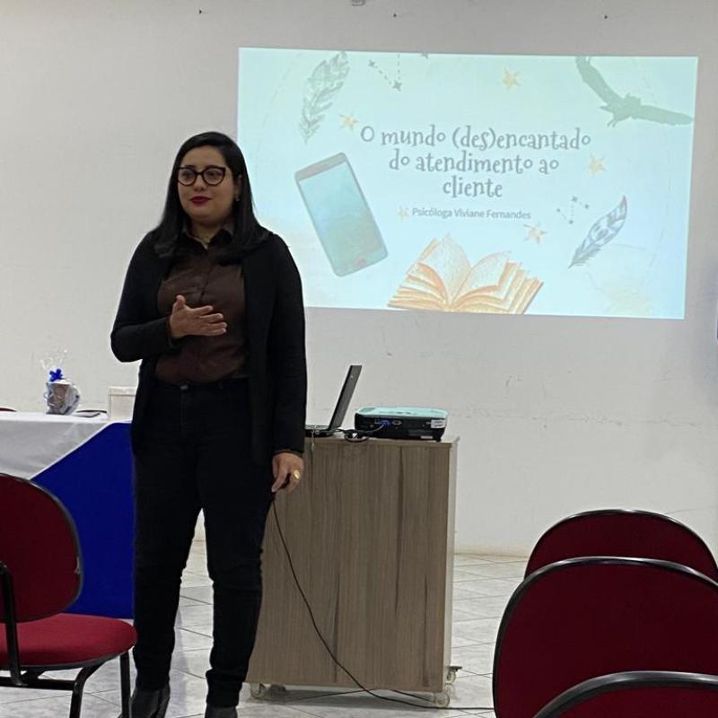 A Psicóloga Viviane, que é egressa da URI Santiago, realiza diversas palestras com foco nos melhores métodos de atendimento ao público, seja interno ou externo. Sendo assim, o encontro trouxe conceitos fundamentais, que devem ser inseridos dentro do ambiente organizacional, no qual facilitam tanto a comunicação da empresa com o cliente, como do colaborador com o colaborador.
