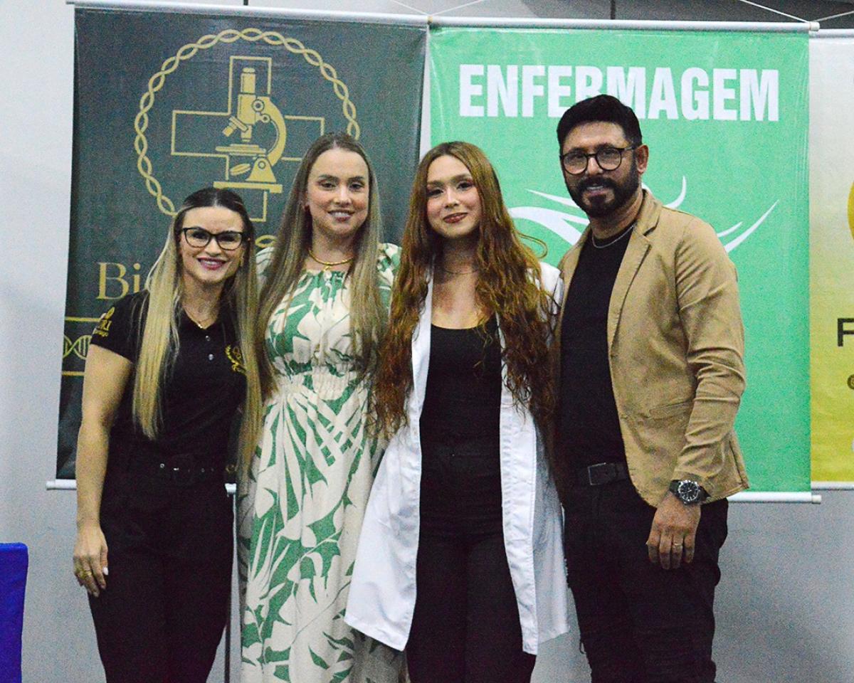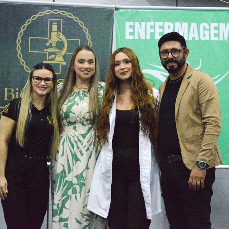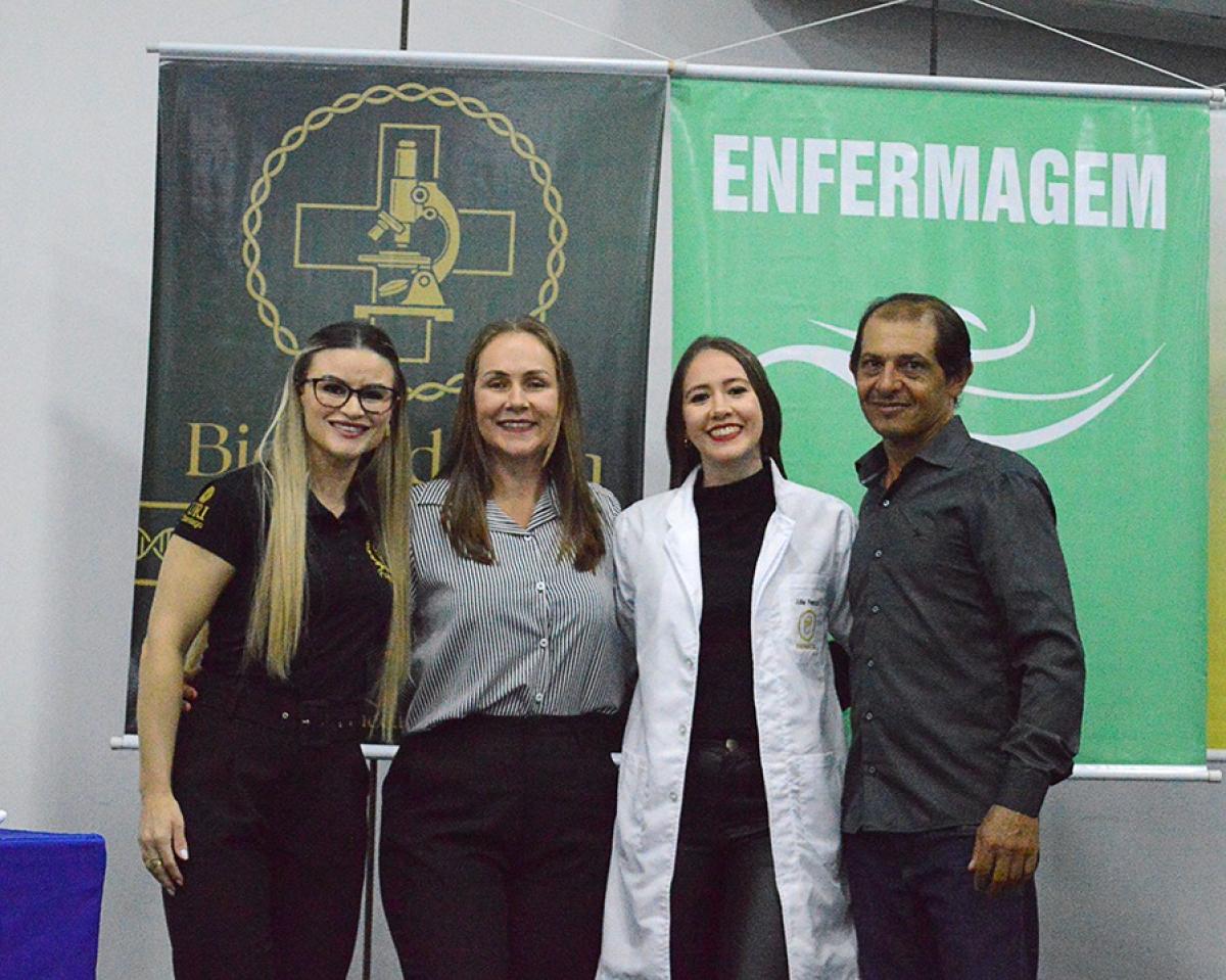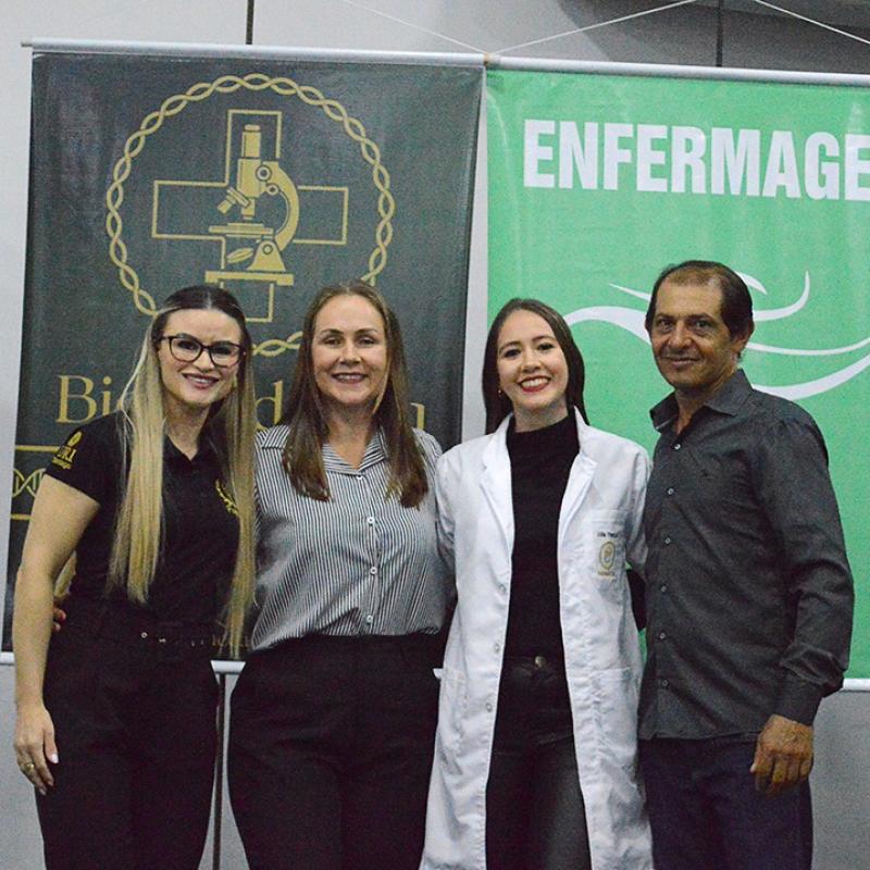 Outro momento de destaque foi o juramento, conduzido por representantes dos cursos: Maria Eduarda Brum Cruz, de Biomedicina; Vanessa da Silva Diniz, de Enfermagem; Diulia Cortes Pinheiro, de Farmácia; e Amanda Merlugo Kratzig, de Fonoaudiologia, que reafirmaram o compromisso dos acadêmicos com a ética profissional e o cuidado com o ser humano.