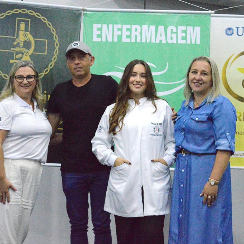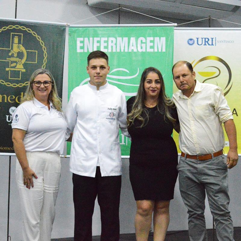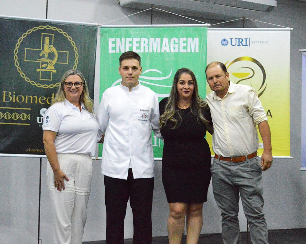 A Universidade Regional Integrada do Alto Uruguai e das Missões (URI) Câmpus Santiago realizou, na noite de quarta-feira, dia 22 de abril, a Cerimônia do Jaleco, reunindo acadêmicos dos cursos de Biomedicina, Enfermagem, Farmácia e Fonoaudiologia em um momento marcante de suas trajetórias acadêmicas.