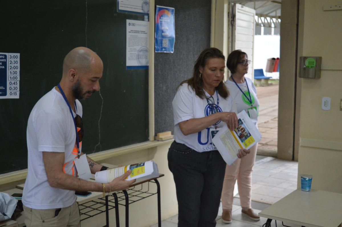 A tarde do último domingo (3), começou movimentada na Universidade Regional Integrada do Alto Uruguai e das Missões (URI), Câmpus de Santiago, com mais uma etapa do Vestibular de Verão 2024. A 2º edição do processo seletivo, iniciou às 13h, mas, antes deste horário, muitos vestibulandos, pais e familiares já ocupavam o Câmpus. A equipe da Universidade recebeu a todos indicando a sala de prova e repassando orientações. Além do formato presencial, candidatos realizaram a prova de forma online.
