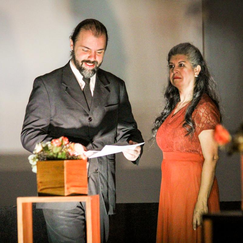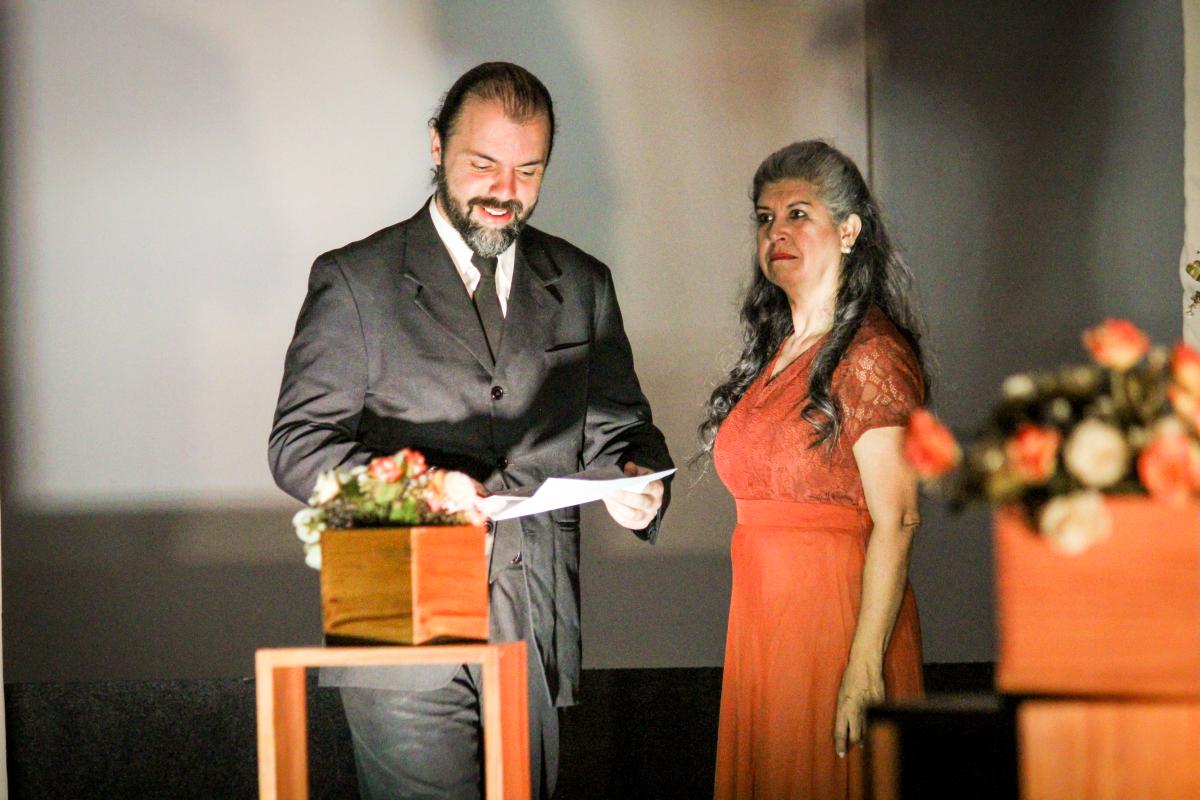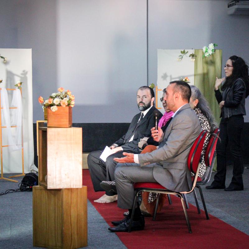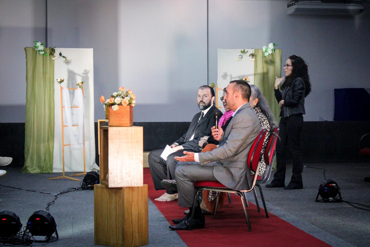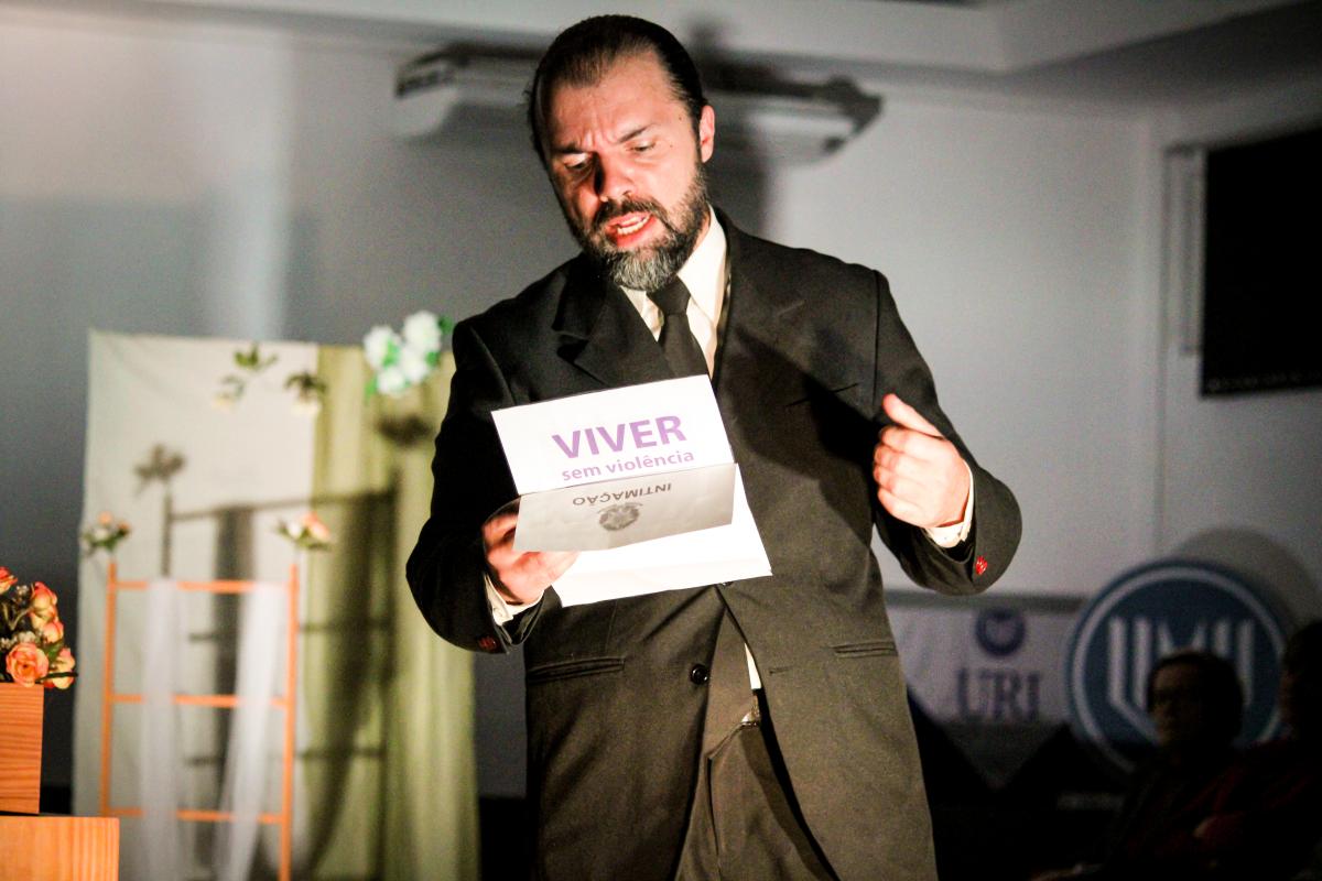 Ao final da encenação, a palavra voltou ao público. Um debate se abriu e foi conduzido pelo delegado Guilherme Milan Antunes, Professor da URI e especialista em Direito Penal, e pela Professora Rosângela Montagner, coordenadora do GAPERG (Grupo de Acolhimento, Assessoria, Pesquisa e Estudo das Relações de Gênero); e do Ateliê Miguelina, espaços de acolhimento e empoderamento de mulheres vítimas de violência.
