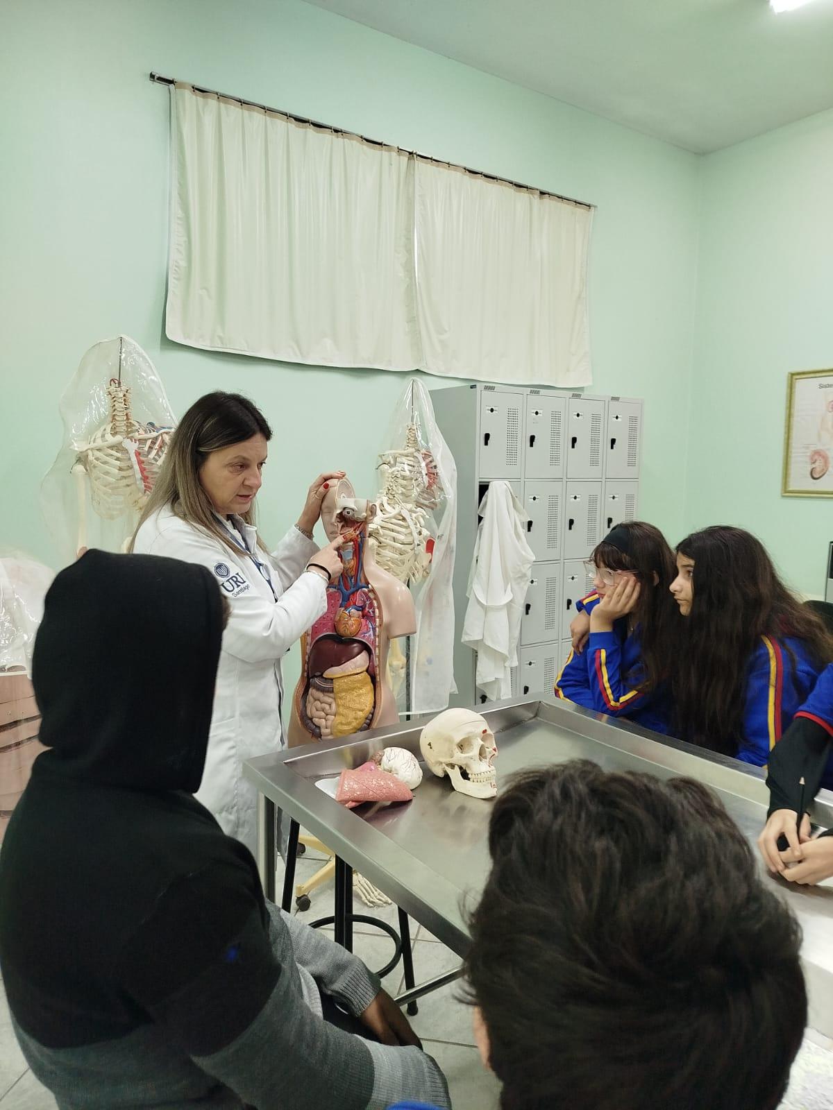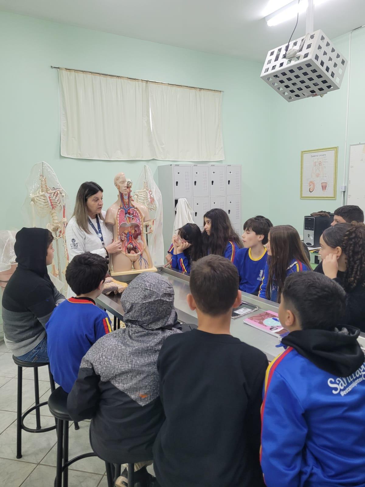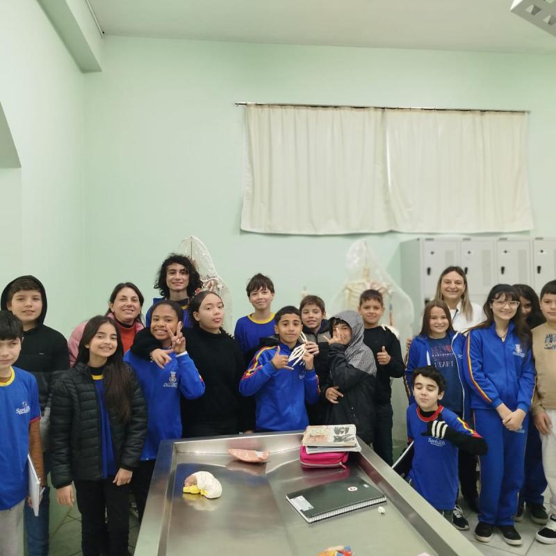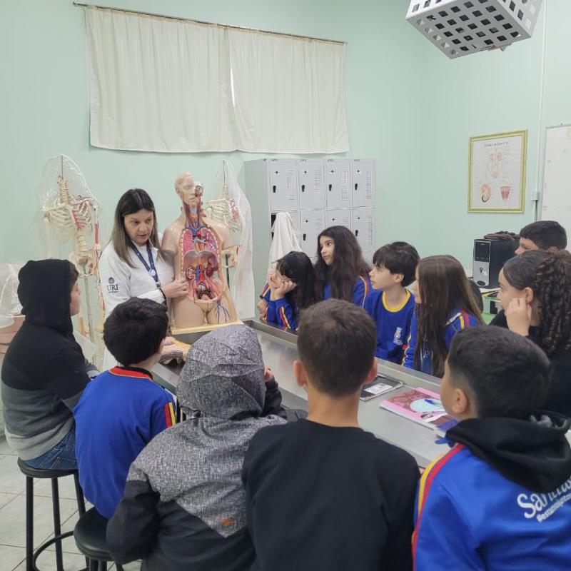 Na manhã do dia 14 de agosto, a Universidade Regional Integrada do Alto Uruguai e das Missões (URI) Câmpus de Santiago recebeu os alunos do 6º ano da Escola Municipal de Ensino Fundamental Severino Azambuja para uma visita ao laboratório de Anatomia Humana. Durante a atividade, os estudantes tiveram a oportunidade de aprender de forma prática e visual sobre o funcionamento dos órgãos e sistemas do corpo humano, tornando o aprendizado mais interessante e compreensível.