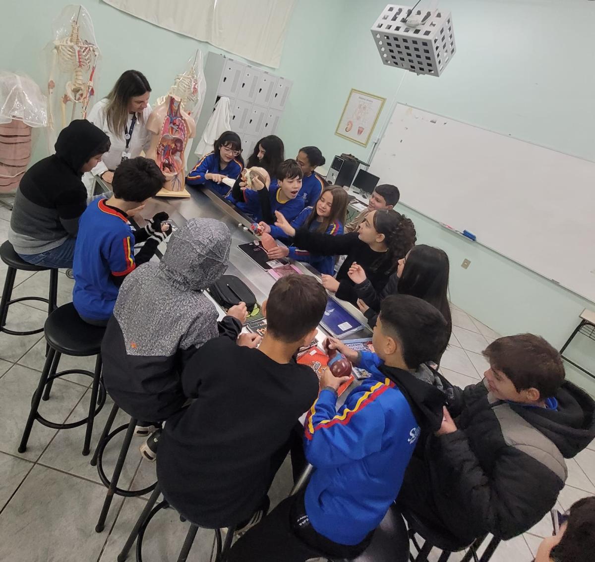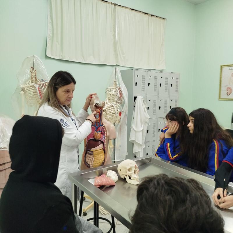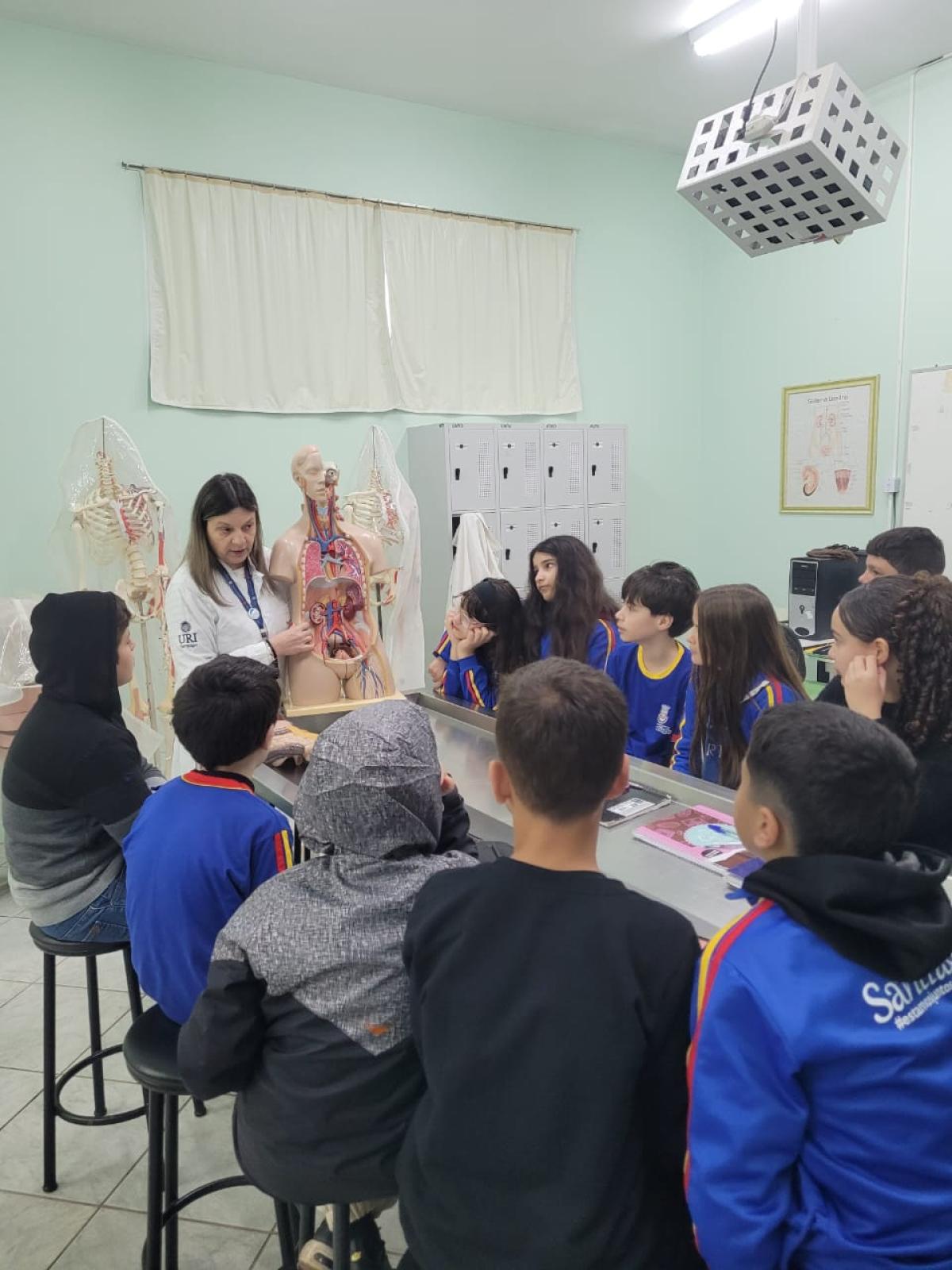 Na manhã do dia 14 de agosto, a Universidade Regional Integrada do Alto Uruguai e das Missões (URI) Câmpus de Santiago recebeu os alunos do 6º ano da Escola Municipal de Ensino Fundamental Severino Azambuja para uma visita ao laboratório de Anatomia Humana. Durante a atividade, os estudantes tiveram a oportunidade de aprender de forma prática e visual sobre o funcionamento dos órgãos e sistemas do corpo humano, tornando o aprendizado mais interessante e compreensível.