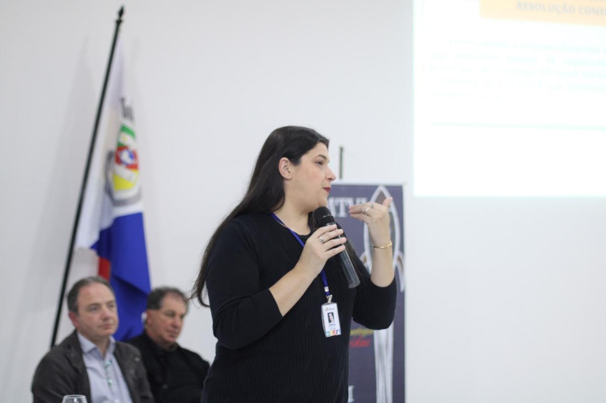 A mesa de debates foi composta pelos analistas ambientais da Secretaria de Meio Ambiente: a Biológa, Daniela Gonçalves Oliveira; a Engenheira Agrônoma, Kathellen Paust; e o Engenheiro Agrônomo e parecerista em licenciamento ambiental, José Luís Chewuuin; além do consultor e técnico ambiental da empresa Geo Flora, Nilo Antônio Espíndola, Biólogo e Geólogo.