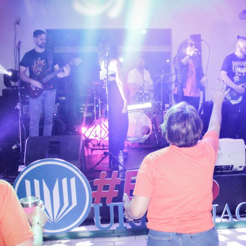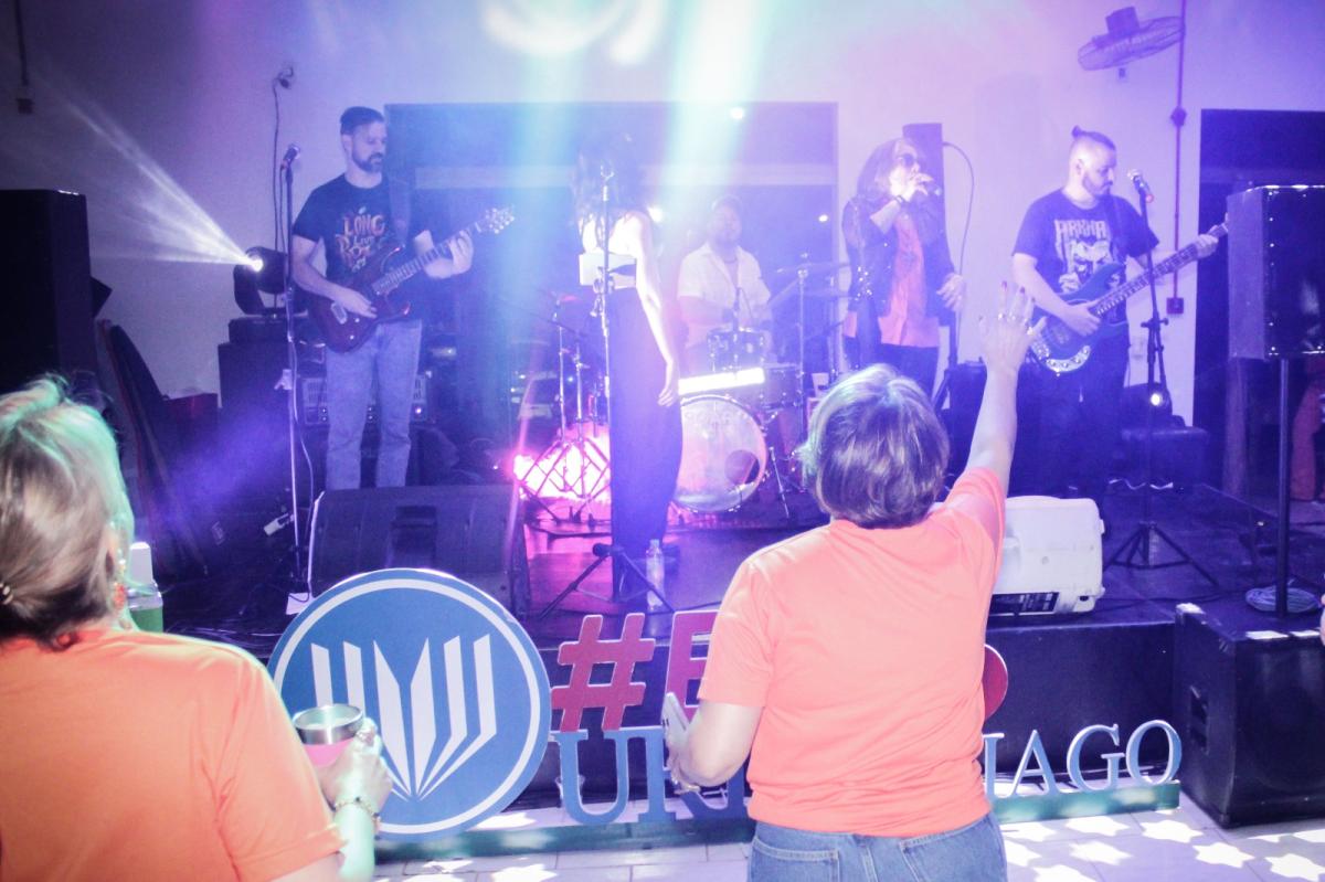 A animação da noite seguiu com confraternização, sorteio de brindes e música ao vivo, com DJ Thito, acadêmico da URI, e a Banda Kósmica, composta pelo Professor Thiago Muceneki, do Curso de Psicologia.