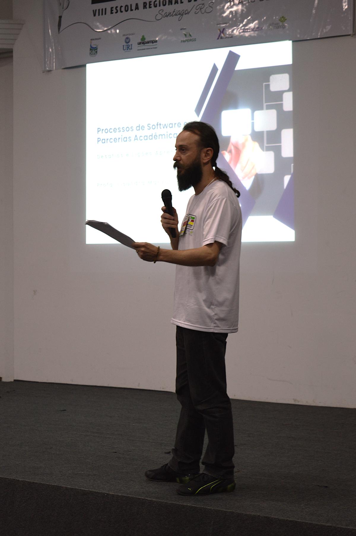 O Professor Anderson Fortes, coordenador do Curso de Ciência da Computação da URI Santiago, ressaltou a importância do evento para a região, afirmando que se tratava de uma oportunidade única para integrar academia e indústria, e para promover a troca de experiências entre estudantes, professores e profissionais da área.