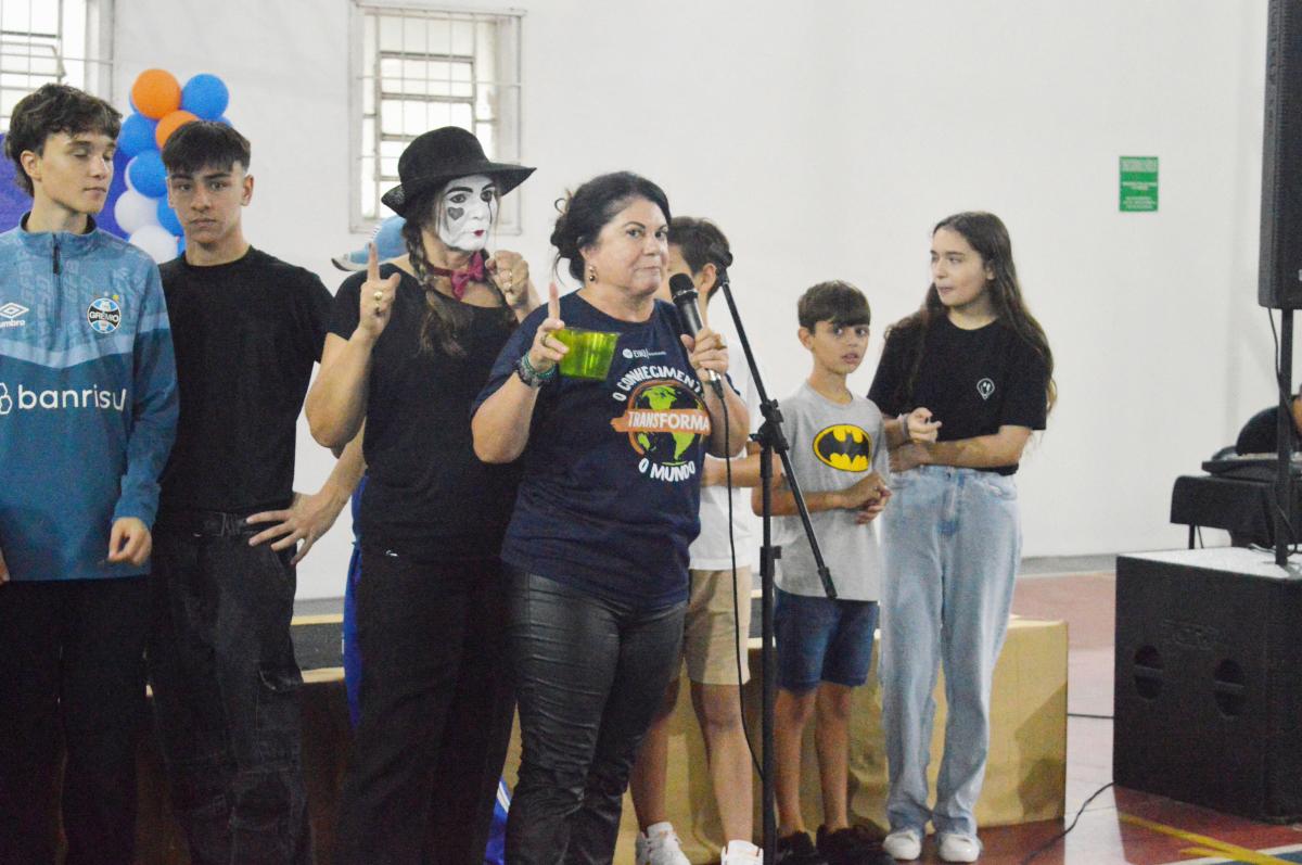 O início do ano letivo de 2025 foi marcado por uma recepção calorosa e cheia de entusiasmo na Escola de Educação Básica da URI Santiago. No dia 17 de fevereiro, a escola abriu suas portas para os alunos do 5º ano ao Ensino Médio, recebendo-os com muita alegria, música, balões e abraços apertados. A manhã foi descontraída, com atividades que incentivaram os estudantes a refletirem sobre o tema central deste ano: Transformação. Durante a recepção, os alunos participaram de uma atividade criativa, criando mascotes para suas turmas, além de conhecerem o projeto pedagógico que norteará o trabalho escolar ao longo de 2025.