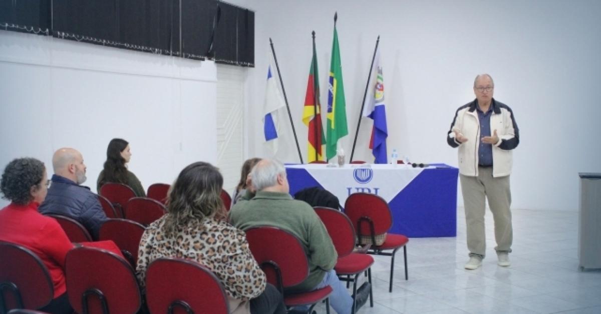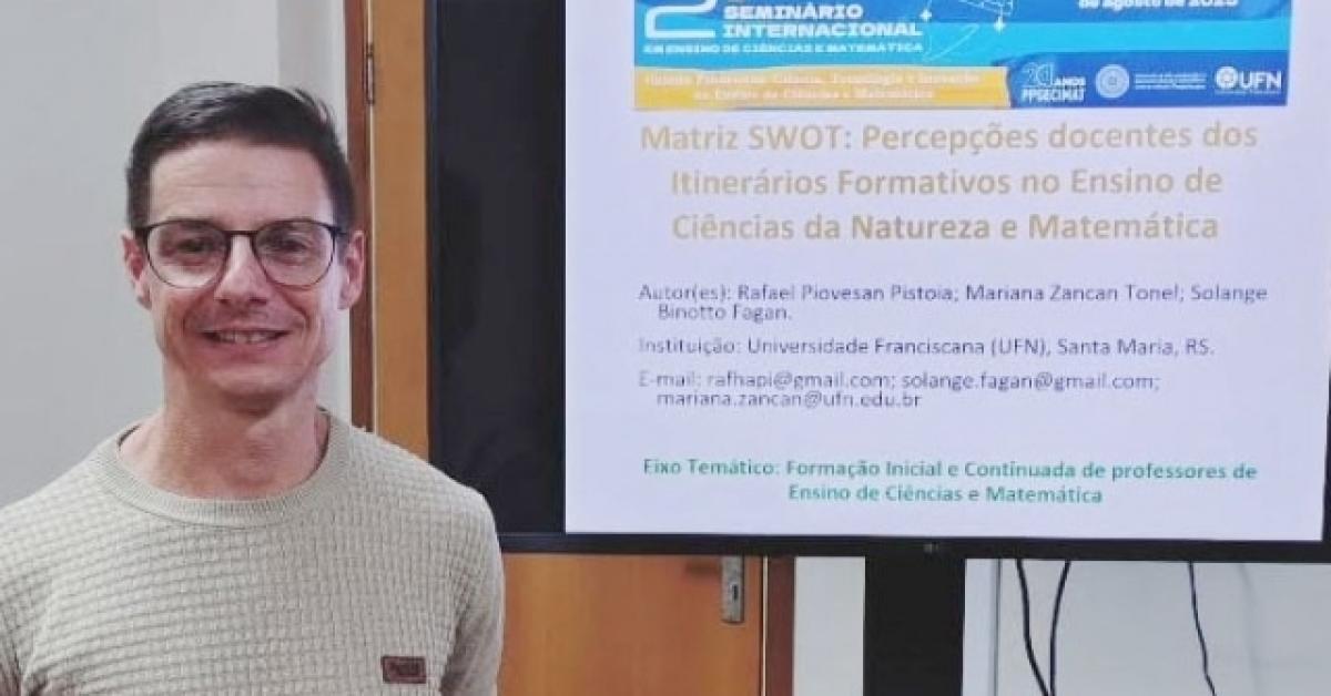 Professor Maximiliano Oliveira da Silva compartilhou experiência didática sobre as enchentes no RS em 2024, destacando o papel da educação na reflexão socioambiental