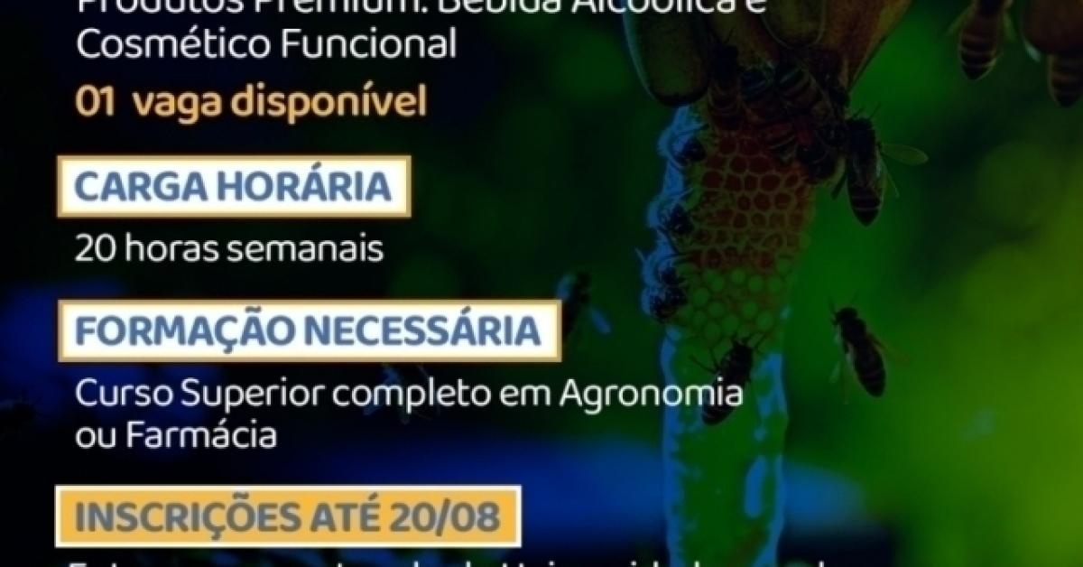 A oportunidade é para atuar no Projeto Mapeamento do Ecossistema de Inovação Apícola e Desenvolvimento de Produtos Premium: Bebida Alcoólica e Cosmético Funcional