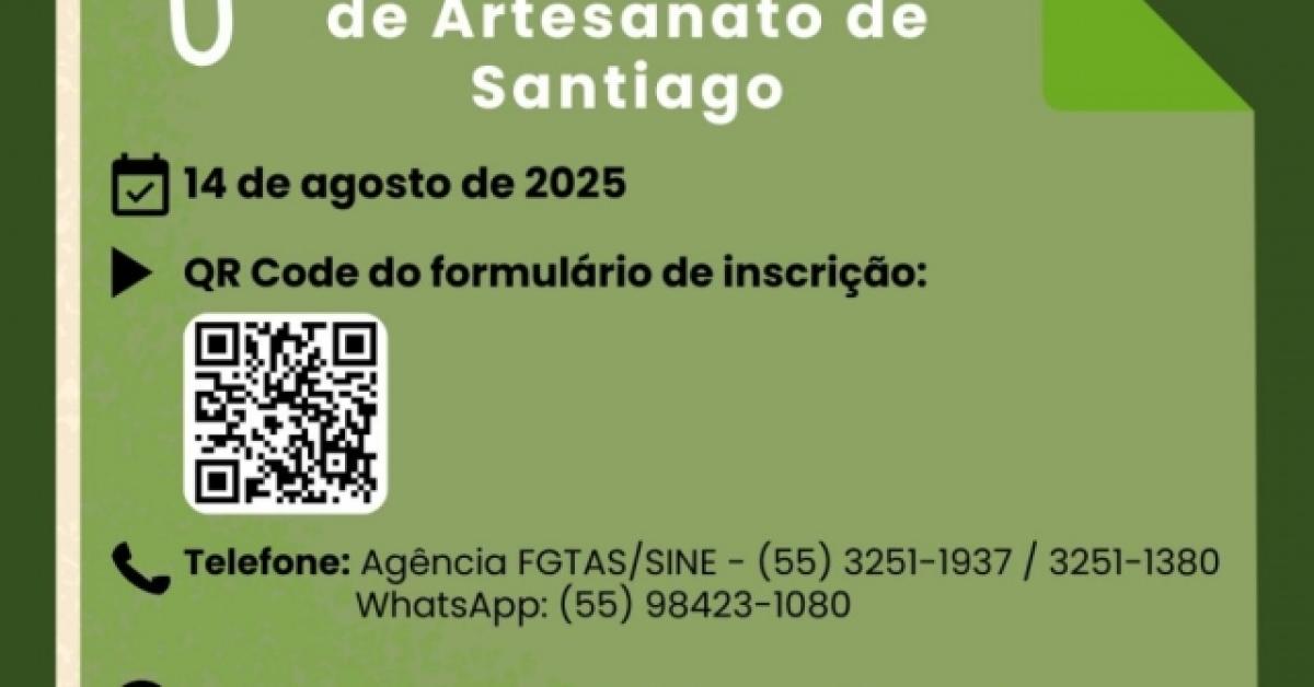 Evento gratuito será realizado no dia 14 de agosto e reunirá artesãos da região para palestras, oficinas, exposição e emissão da Carteira de Artesão